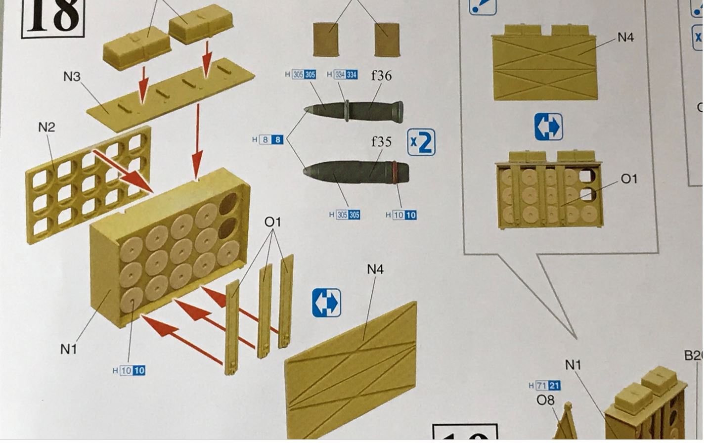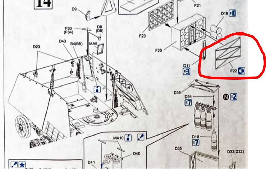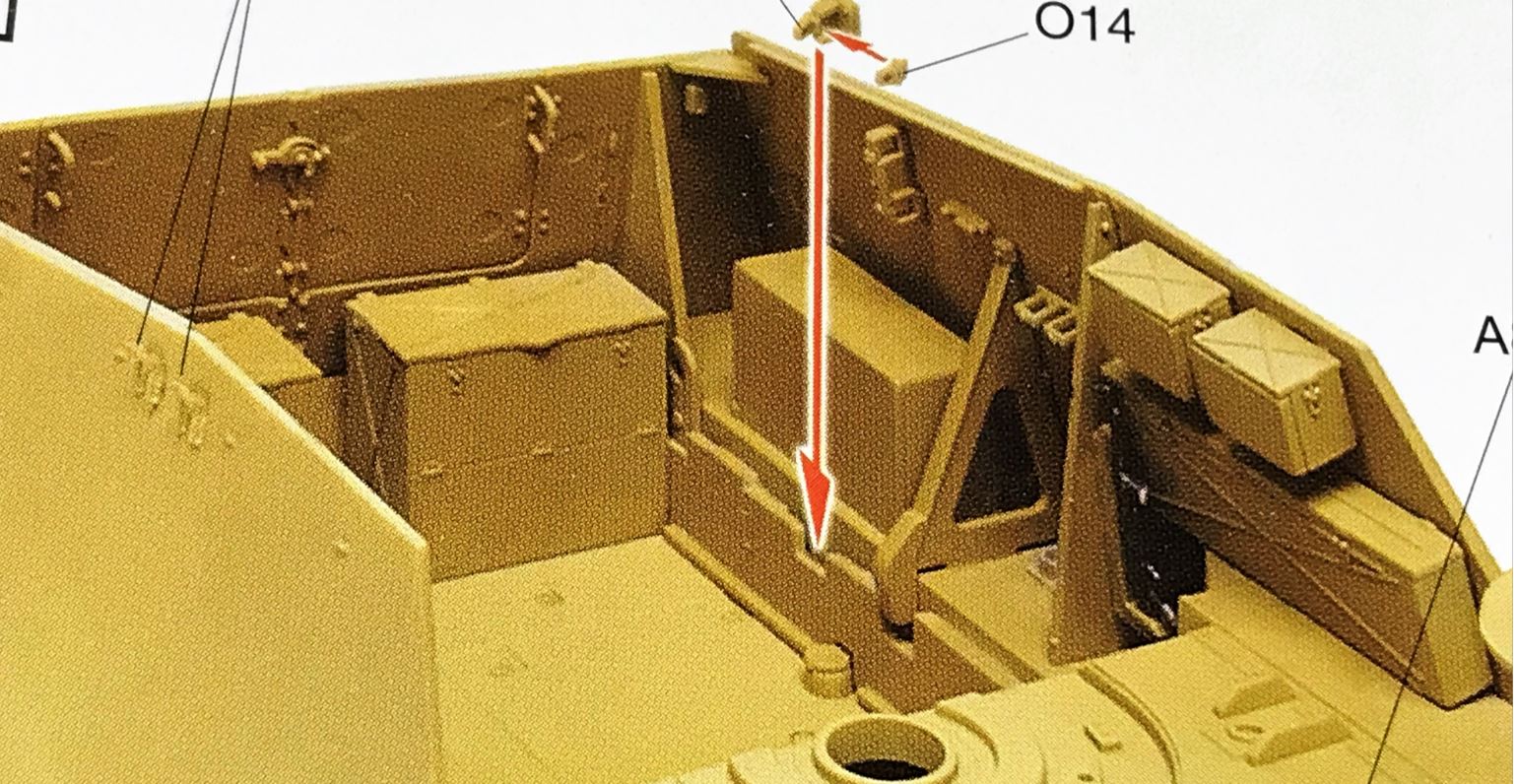 View of the Tamiya instruction on the shape and size of the ammo bins at the rear.