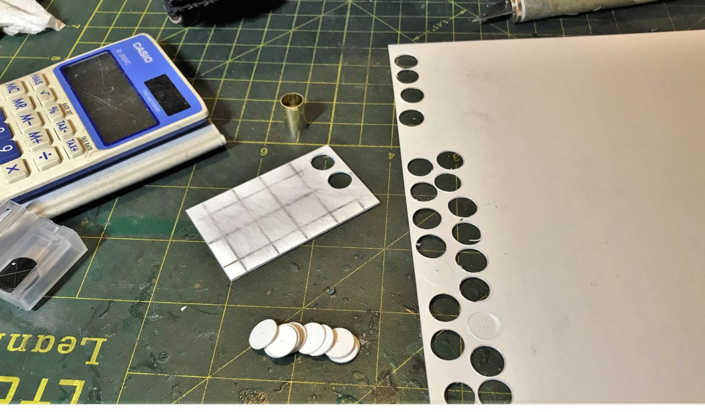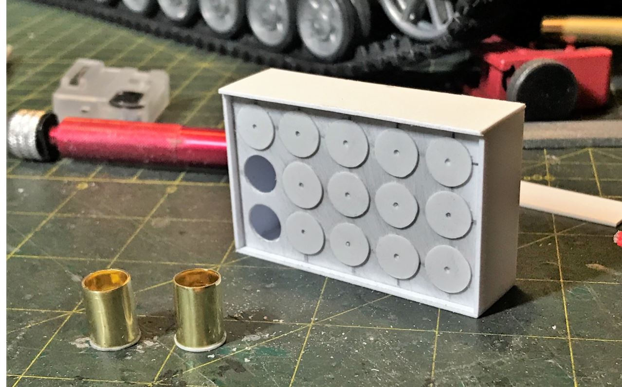 As my Hummel will have a crew in action. I am showing two cartridges being removed and used. The back of the cartridges to show on the bin are made using a cutting compass.