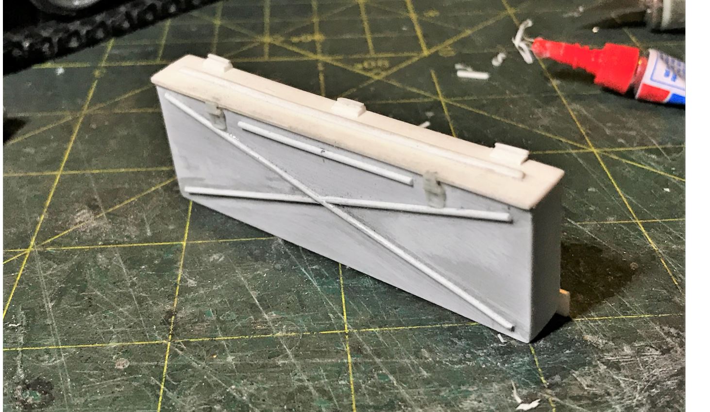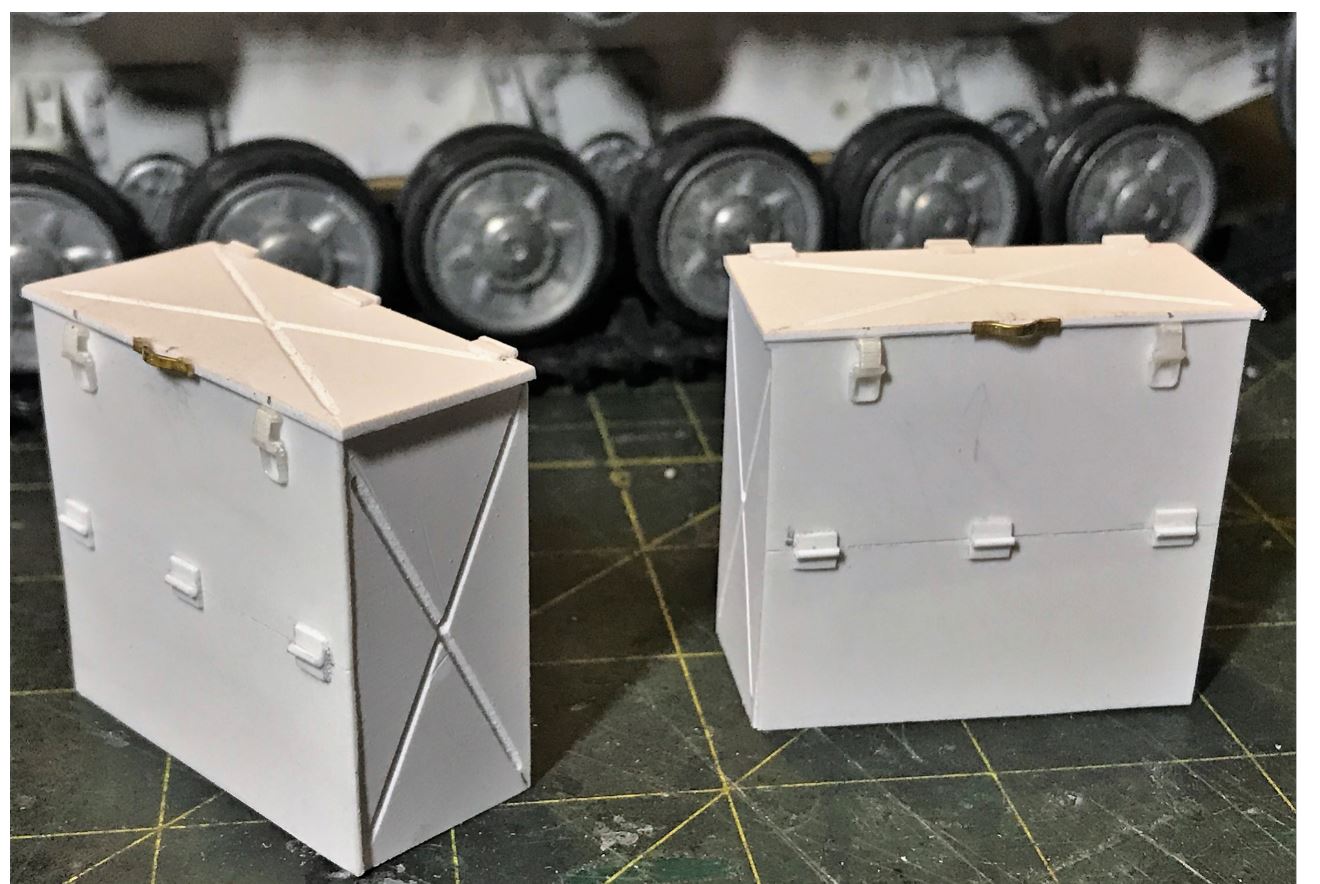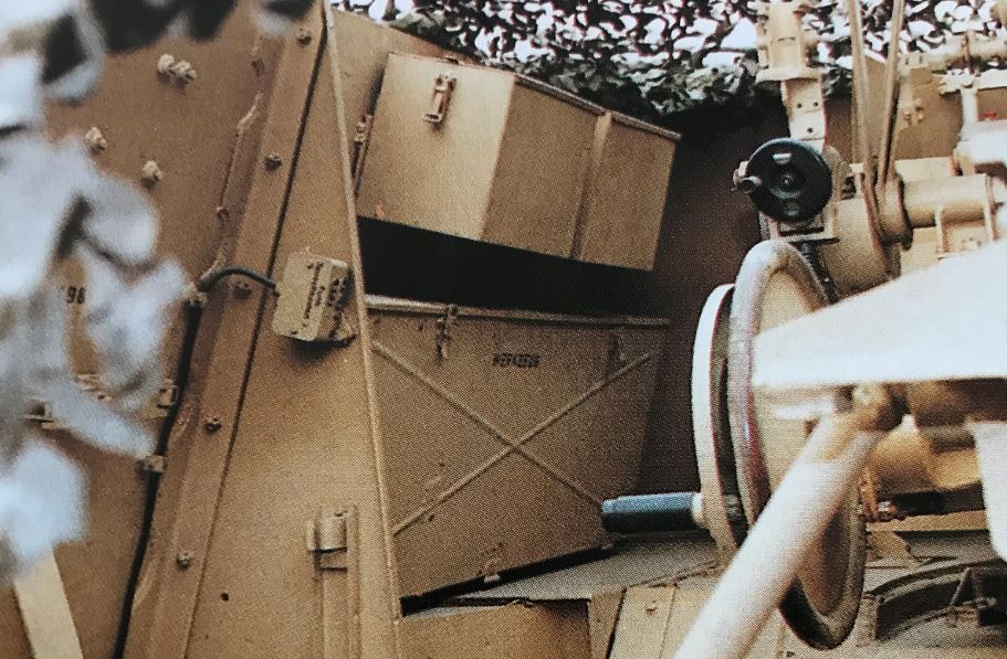 On the left side of the howitzer, some references show 2 boxes. Although the larger tool box at the bottom is consistent in all references and 1/35 kits, i have not seen this upper box shown in any pictures.