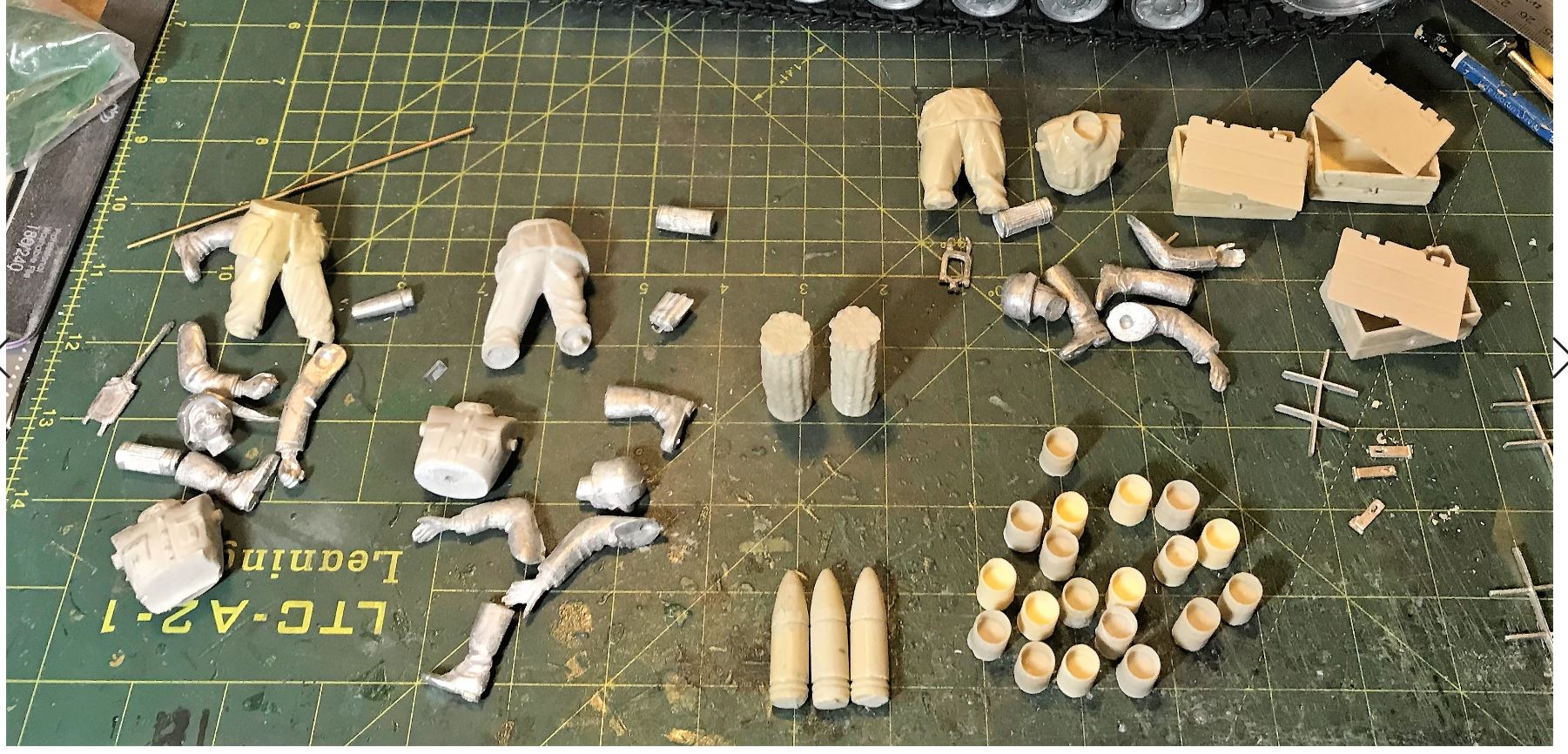 The detail of the MP-40 is not that great but they are in metal. I thought about getting more precise resin MP-40s from Reedees Miniatures but these are really fragile for an RC vehicle.