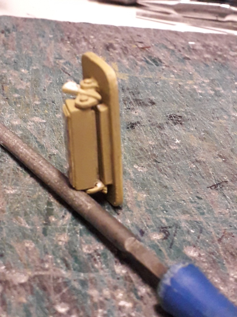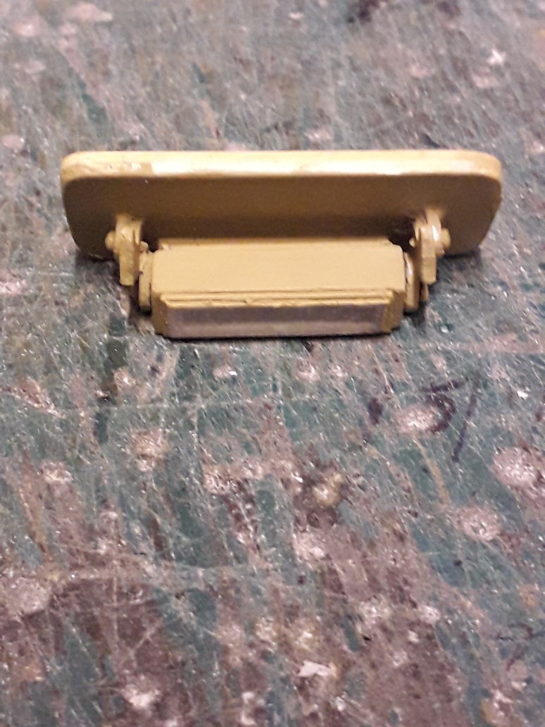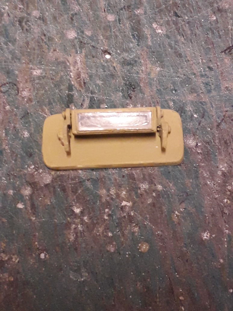 The photo shows the outer plate with the inner double hinges and the drivers armoured glass vision block which can be angled to whatever position i put the outer plate in to have correct sight line, also is a photo of the vehicles internal hinge which fits onto the arms on the port hinges, its painted on the inside prior to fitting as when fitted i wont be able to paint it without messing up the glass vision block keeping it clear.