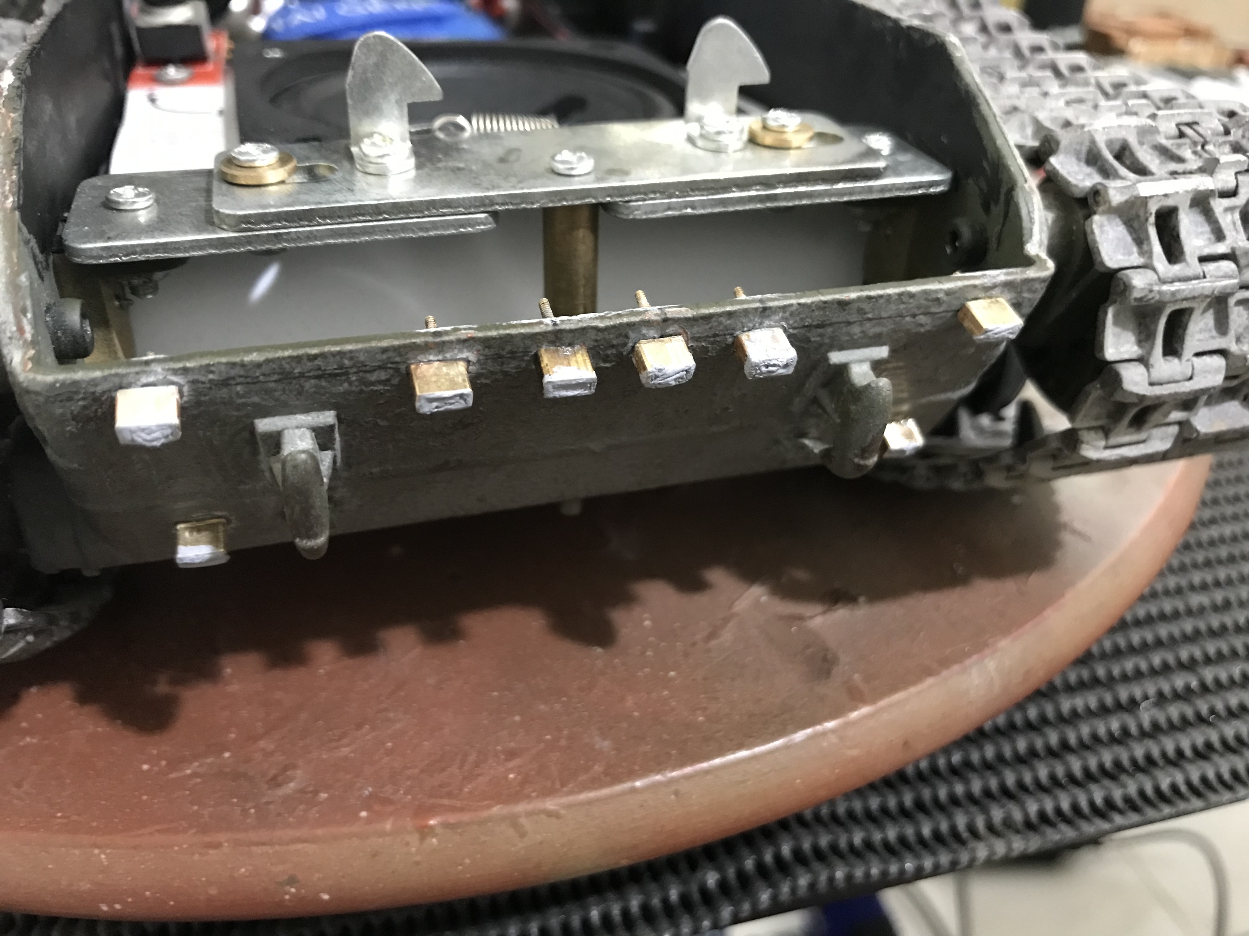 The plastic will then be epoxied onto the brass mounts and the lower hull plate to aid smash resistance!