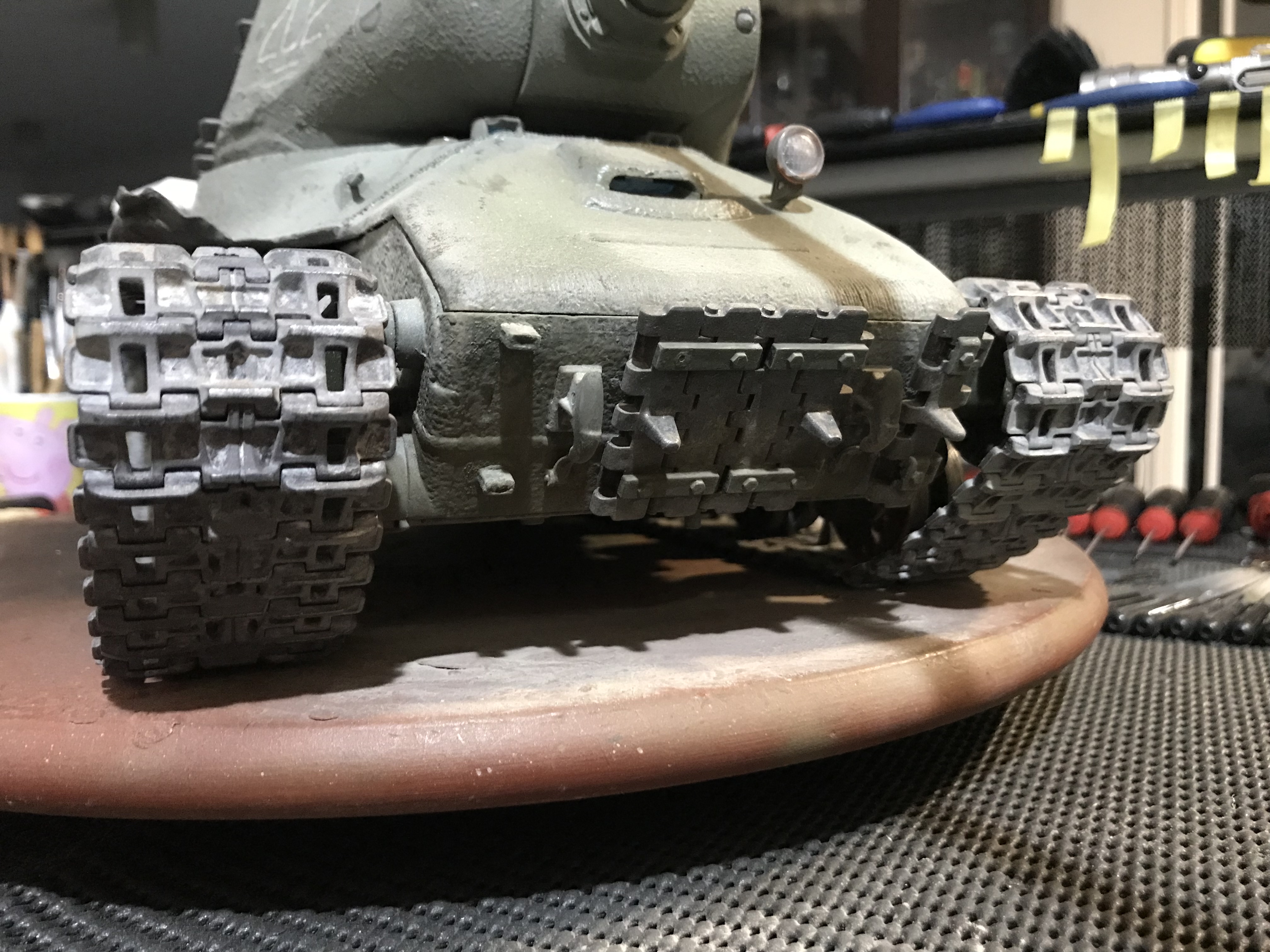 Spare tracks mounted on the lower front glacis plate on the JS-2 are very specific, and in the case of a 16th scale model, need to be robust.