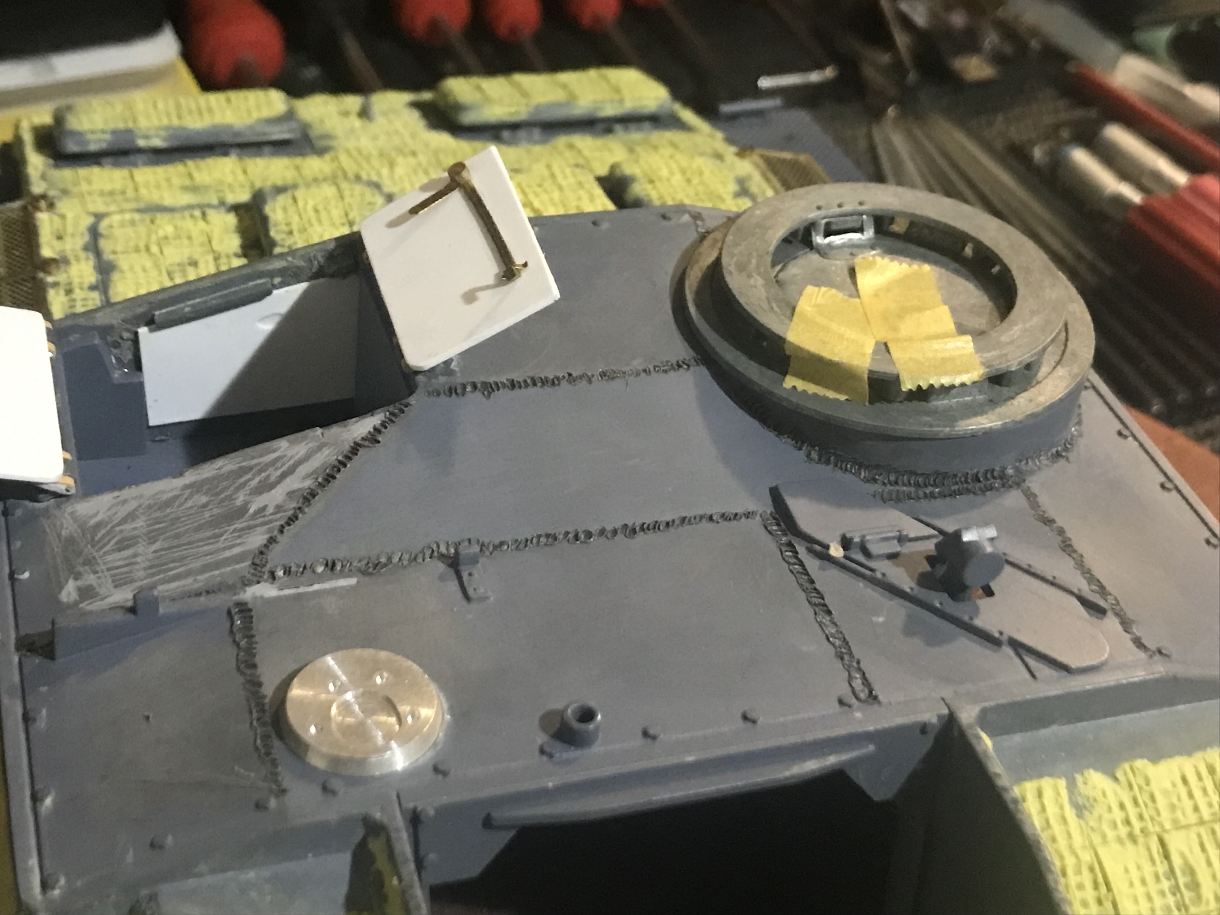 The frontal section of cupola armour and remote M.G. mount(M.G. not used in my subject picture)went on in a flash.