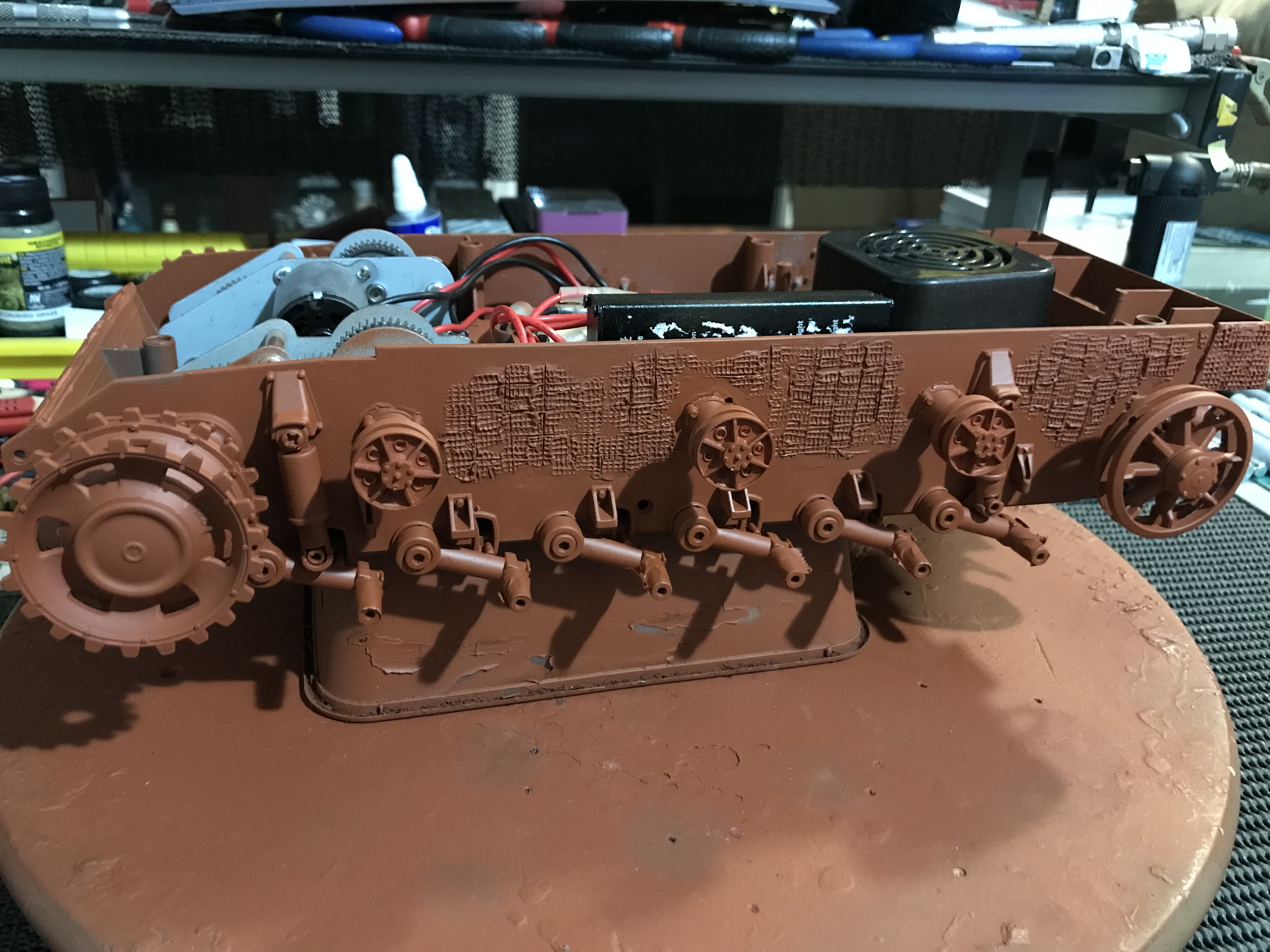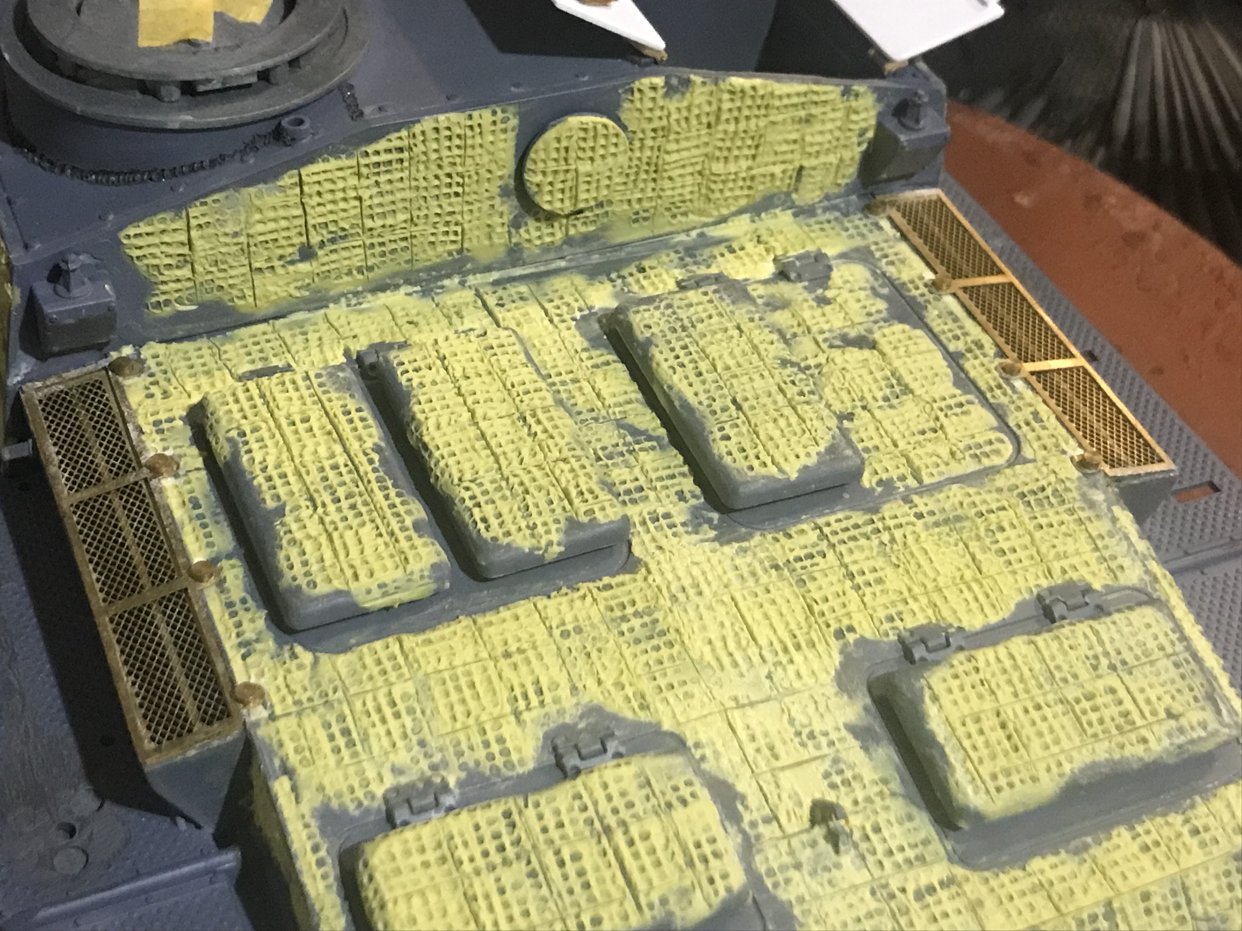 Ran the weld texture over the casemate roof, and added the brass mesh screen on the air intakes.