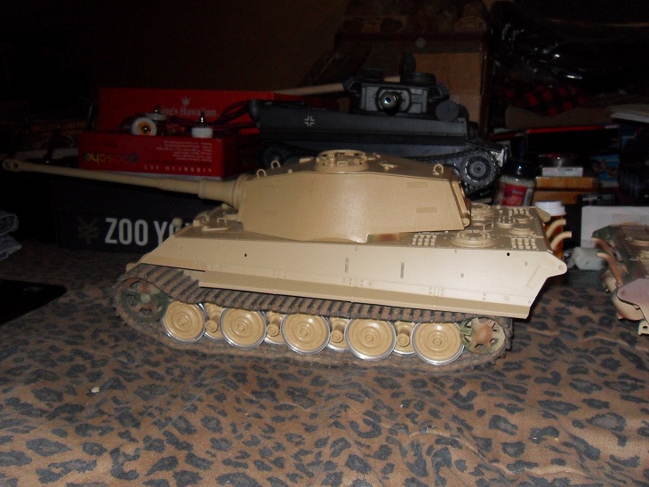 i put kt back together today painted and varnished tracks then put them on switched tank on and it just goes back and forth like its firing nothing else works then a part of inside turret that holds the barrel broke off so now i have to take the whole thing apart i tested it all before putting it together and it worked fine talk about happy fathers day this is it before i strip it down