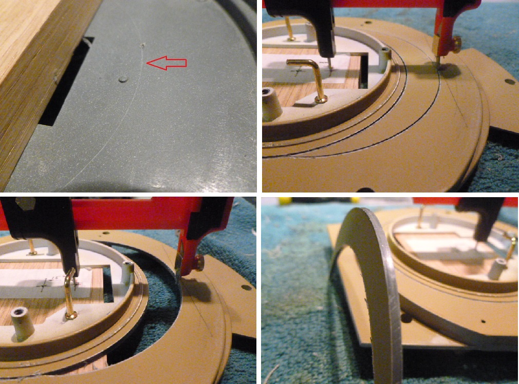 5 -Using a Jakar compass cutter placed in the centre point A, you score 3/4 through thickness (NOT FULLY)