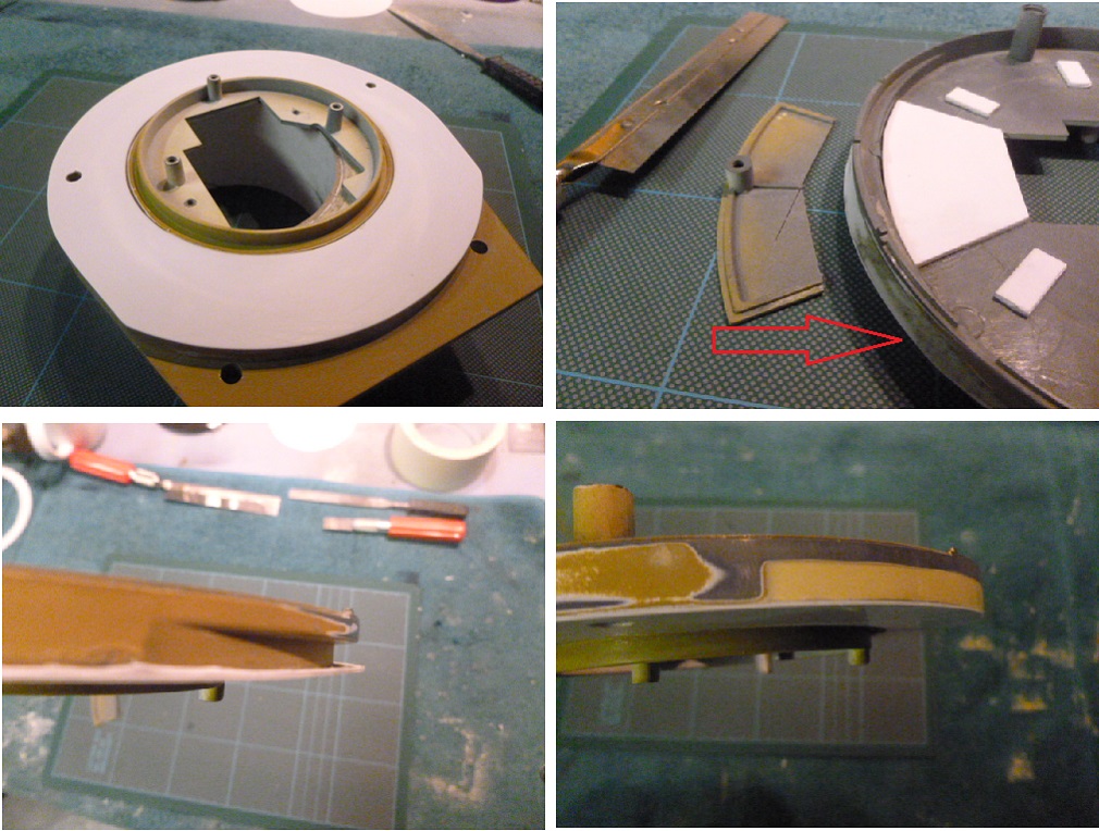 21-Ensure this extends flush with the outside profile of Turret Base. At this stage I removed the HL Bin base as I will be adding a Tamiya replacement which is the correct size and shape.