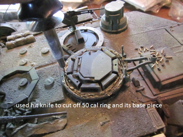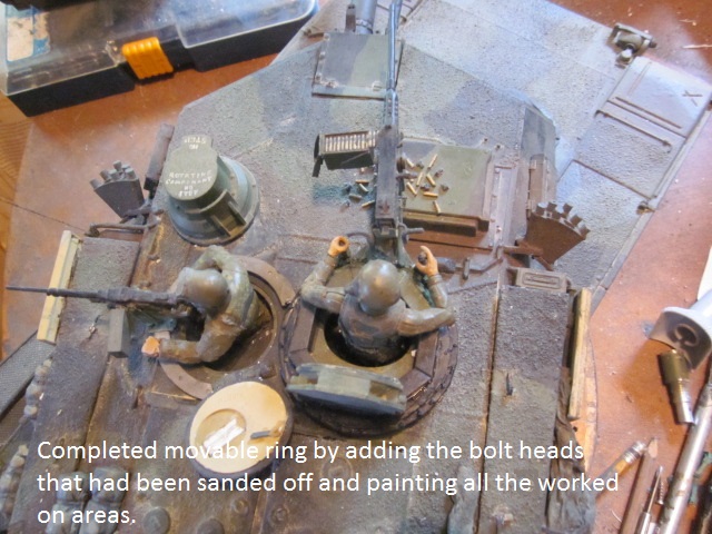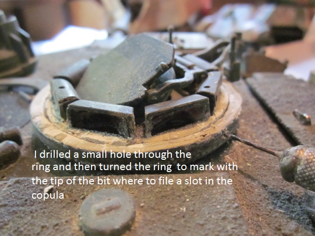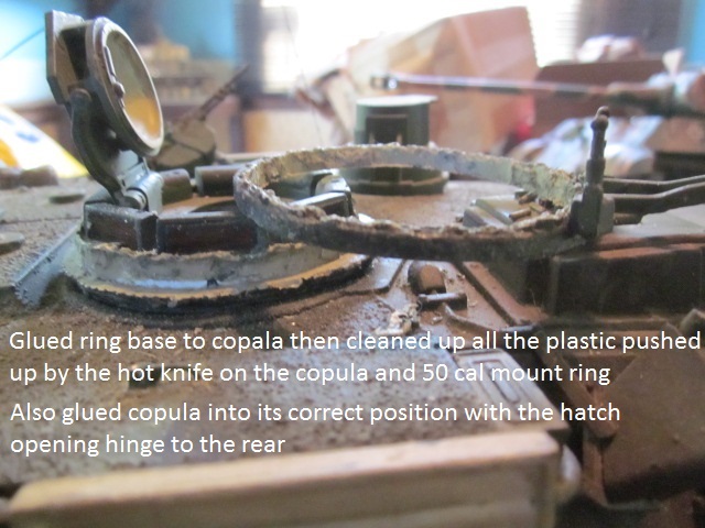 Here are pics of how I corrected my mistake and made the copula stationary with only the 50 cal gun mount ring rotatable on the stationary c0mmanders copula.