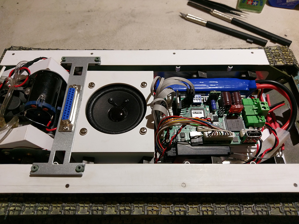 I've been too unwell to get any real work done on these tanks for the last few months, and only managed to start back about four weeks ago. I promptly drilled into my left index finger and couldn't do anything while the digit was bandaged, and now here we are. While recuperating I had one of those "good ideas" that's rapidly become more trouble than it's worth. I thought running all of the upper hull electronics through D-sub connector would be a good way to simplify the connection, since the upper hull needs to be removed to change the battery and refill the smoker. Fitting it to the quick-connect cross-member would allow it to help hold the upper hull in place. So far, so good.