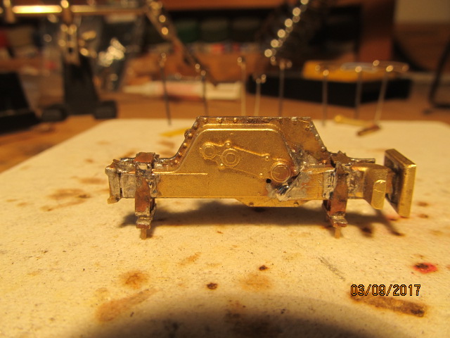 Soldering rear fender support fins in place.