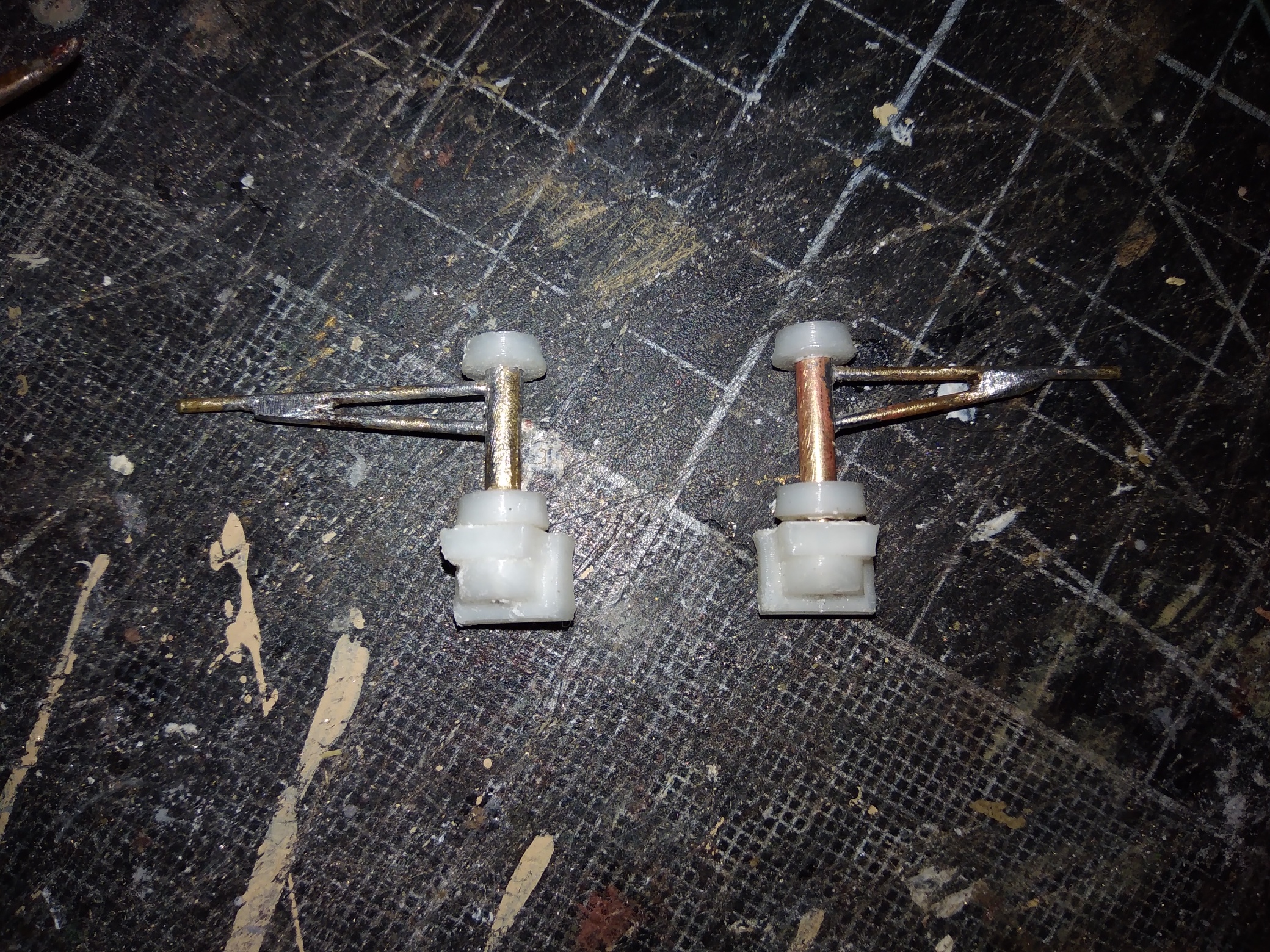 The assemblies demonstrate the best and the worst of my brass work. Where the arms join the main upright, I am pleased with the joints made using solder paste. However, try as I might I could not get a decent joint where the 2 arms join using the paste. Not knowing any better, I reverted to using traditional solder which sort of flooded it. Hopefully, judicious application of some heavy filing has left me with a presentable final outcome.