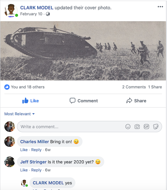 Clark is very much interested in the Mark IV - he's posted about that last month on his FB. On a personal note, I can relate to the FT-17 since its my favorite given its initial influence and breath of use worldwide during the first half of the past century. I have the Takom kit & needed components to build it RC one day. After seeing Warslug's 1/6 version up close & personal, I'd love one but am not about to drop $7000 for it. That's meant for Crazy Rich Asians who think nothing of dropping the bucks for baubles to show off. :haha: