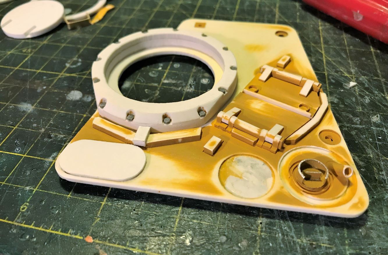 The body of the cupola hatch is made of layers of thick plasticard glued together