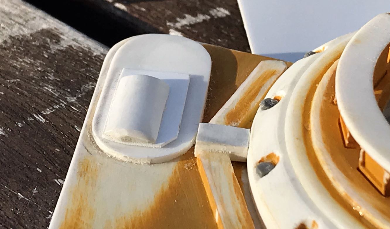then shaped as per 1/35 kit reference using the Dremel and nail files. Mounts for the opening brackets were added after.