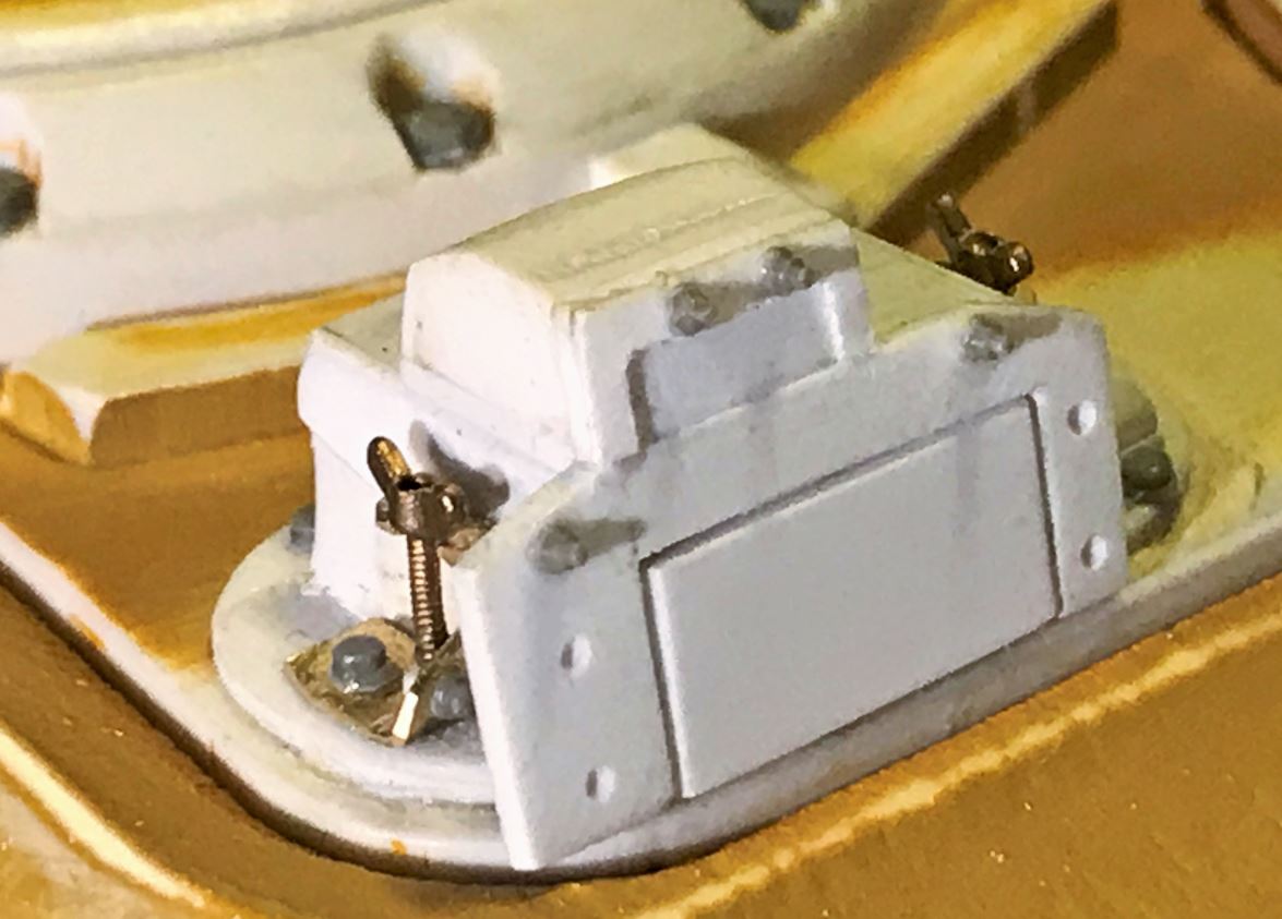 Views of other detailed parts. 4 small rectangular brackets on the right side of the commander's cupola are shown in position or removed in reference pictures. Since I had no clear picture of them or what they were doing, I reproduced only the mounting bolts, seen in references.