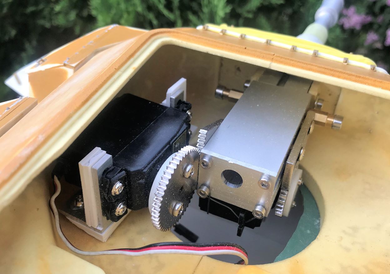 I installed the gun elevation. I made the Centurion the honor of having an expensive DKLM metal unit and it shows. I am connecting the elevation servo to Channel 6 on the VRB rotation knob instead of going through the TK22 control with sticks. I have found that the VR knob for elevation provide much simpler control than having to deal with 2 sticks.