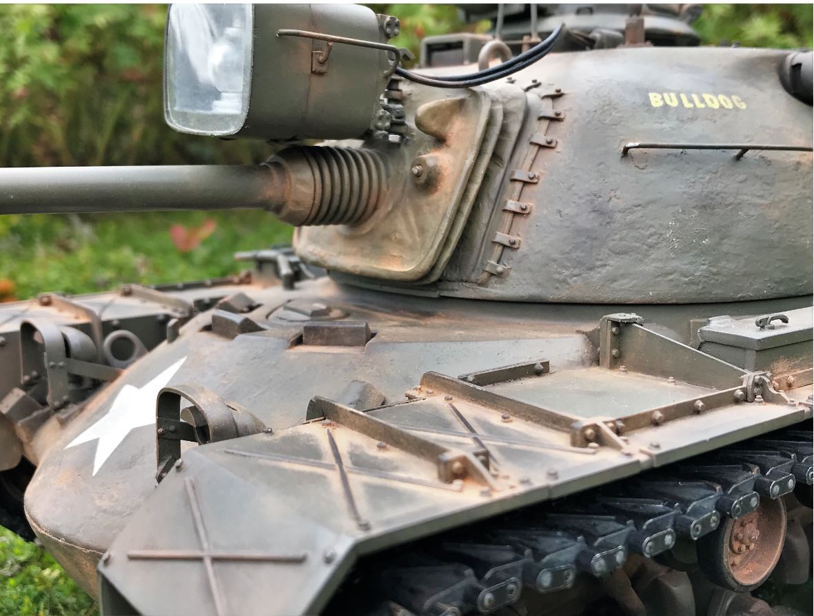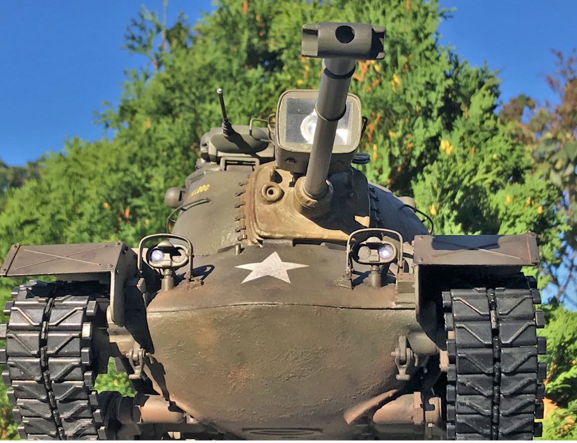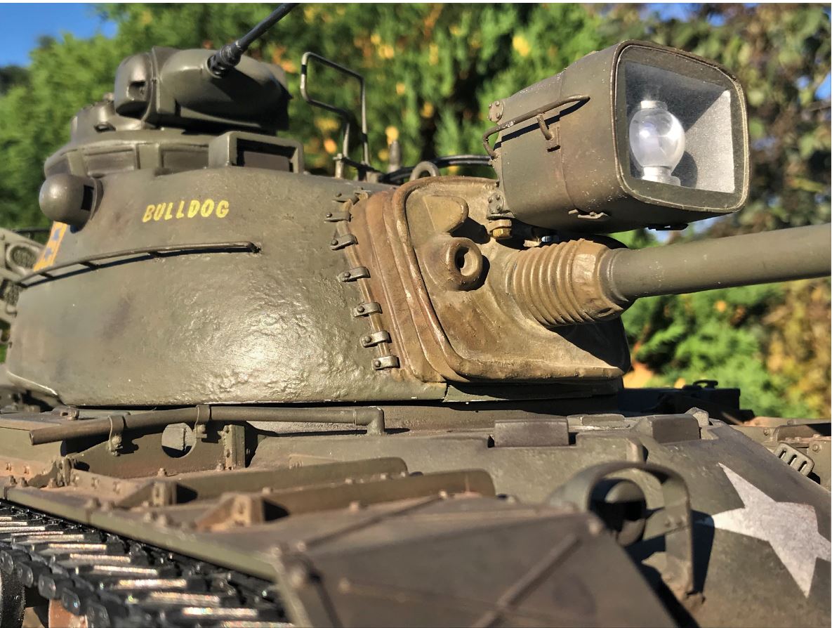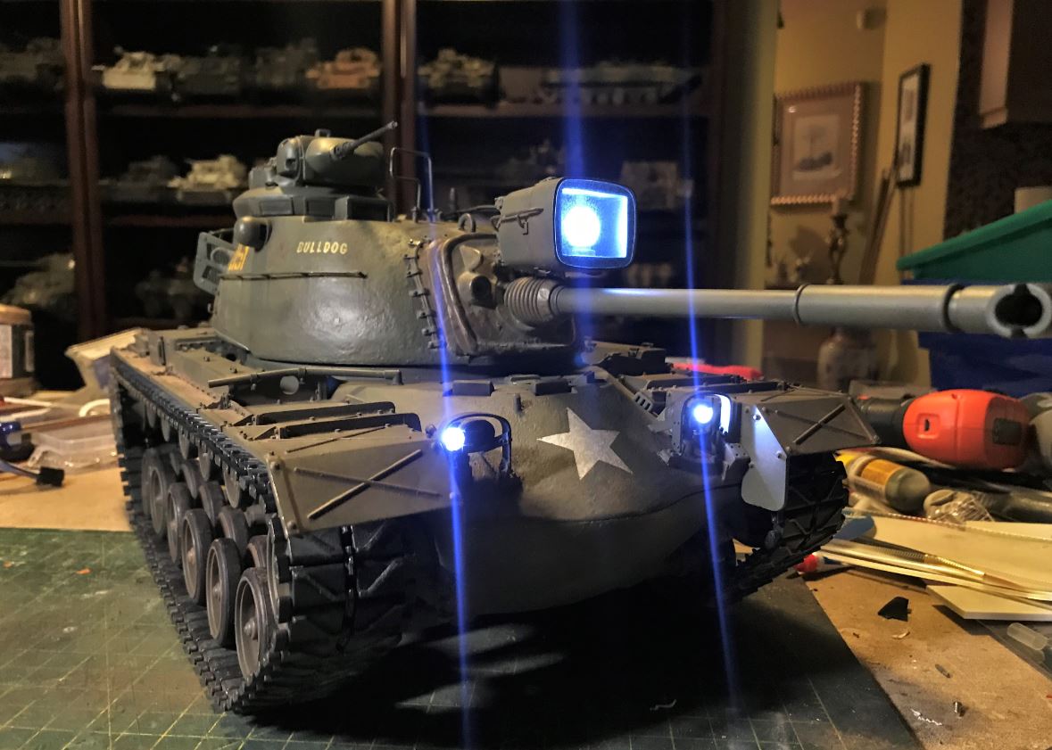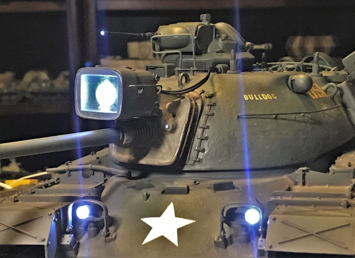 The tank is blasting all its weapons and lights. I was able to put the machine guns on their own switches so I can shoot both at the same time while I am running the tank, rotating the turret and operating the cupola independently. Cool