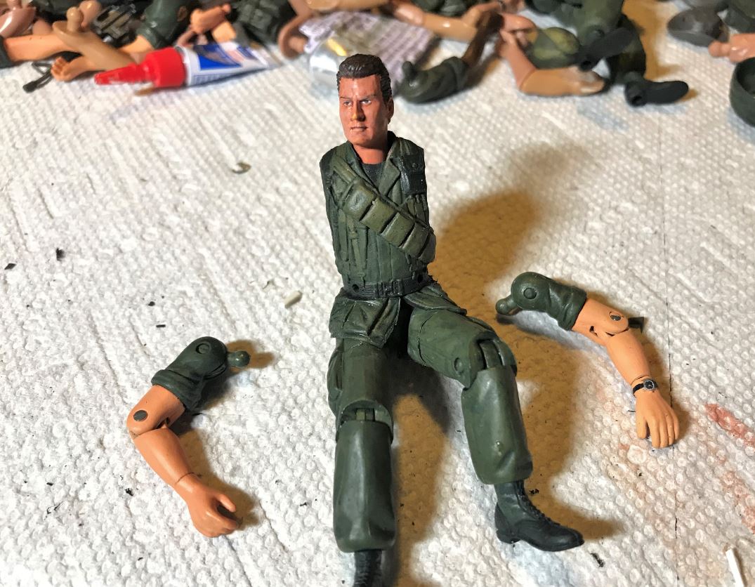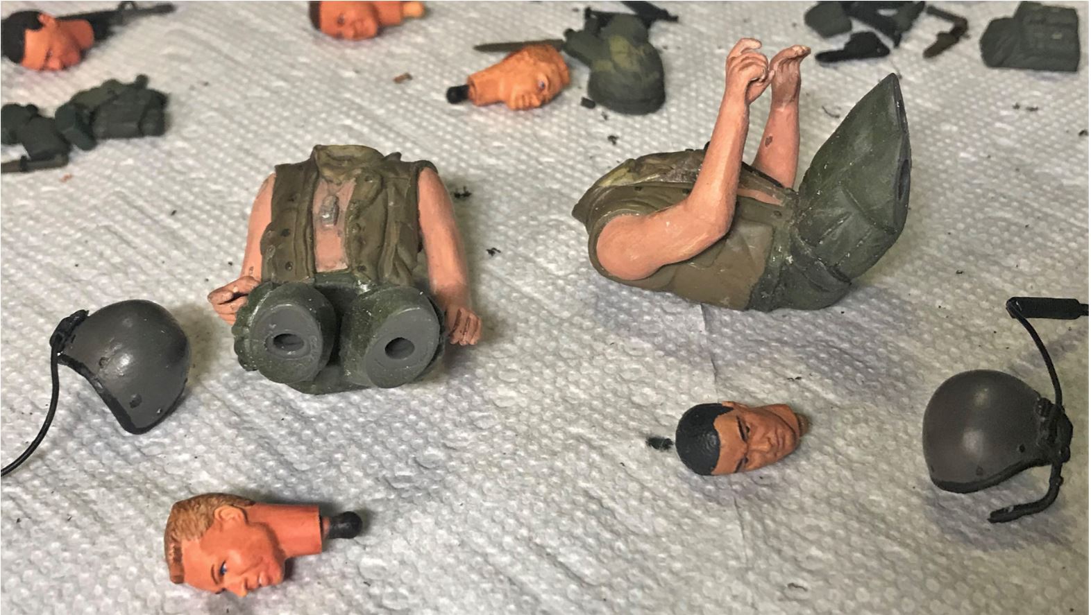 Many of you will recognise the actor Tom Berenger on the left and Charlie Sheen on the right. For the helmet to fit correctly, the top of the figures head need to be shaved.