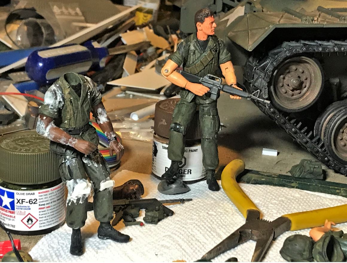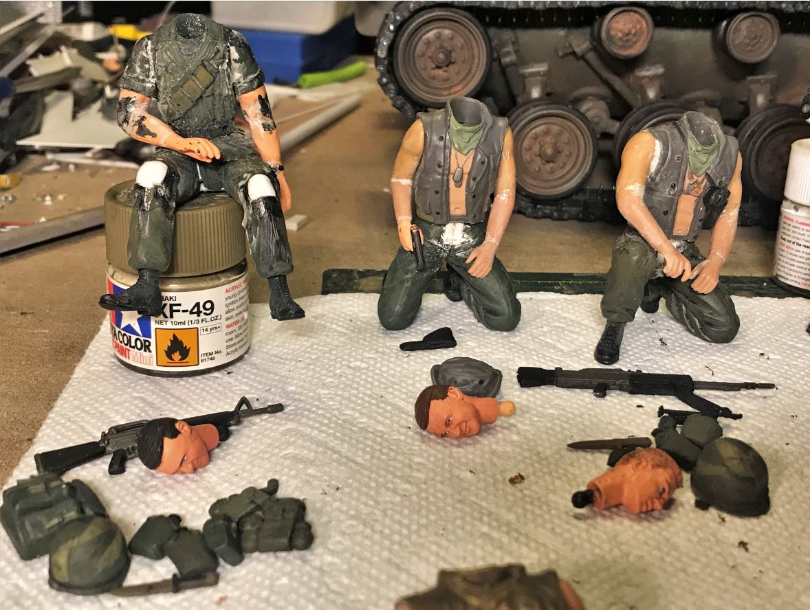 As this is a build, i wanted to show a "work in progress" post on the buildup of the American mechanized infantry in Vietnam so that you can see the technique if some modellers are interested in replicating.