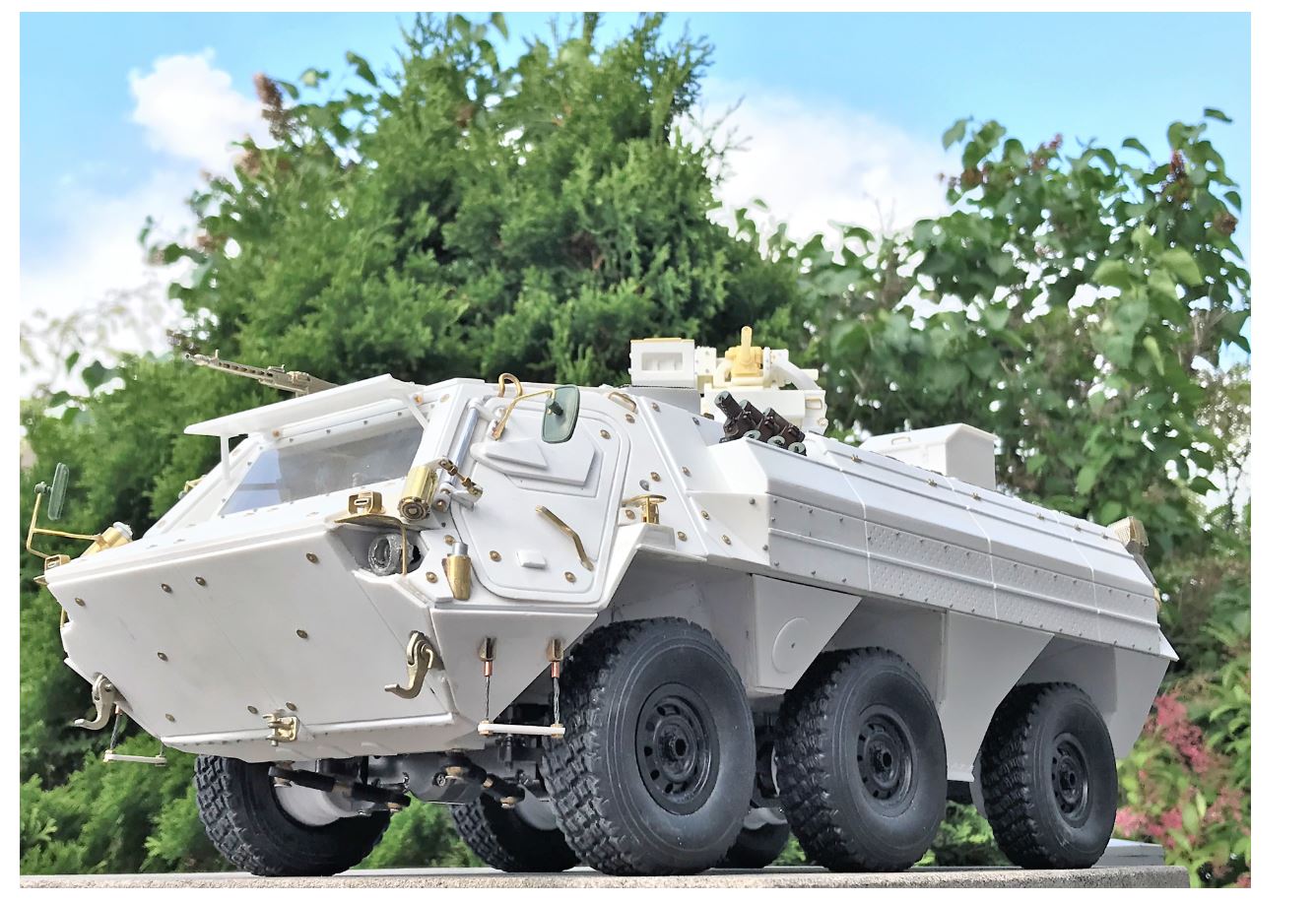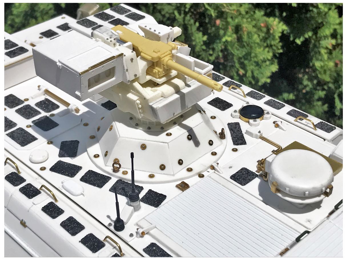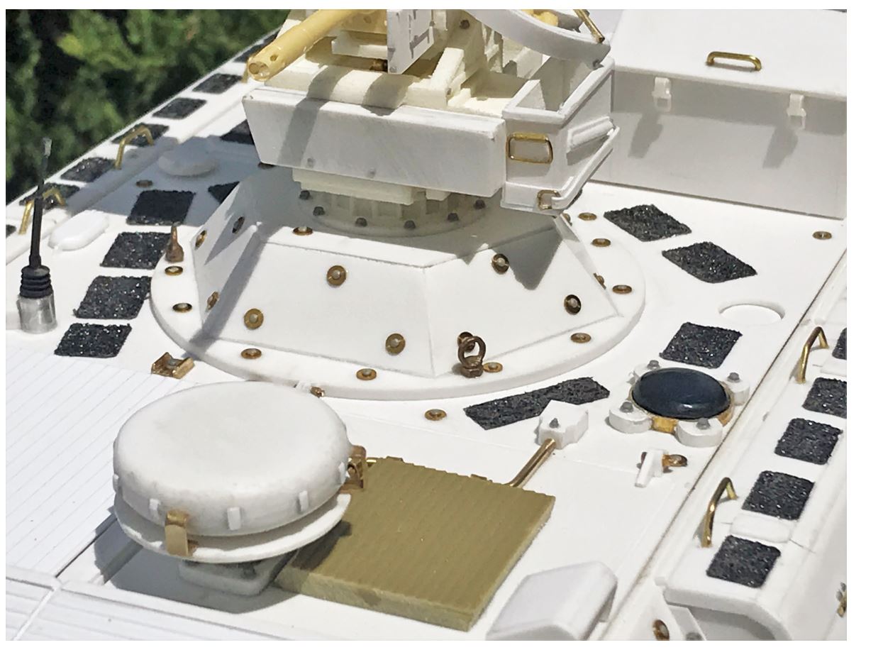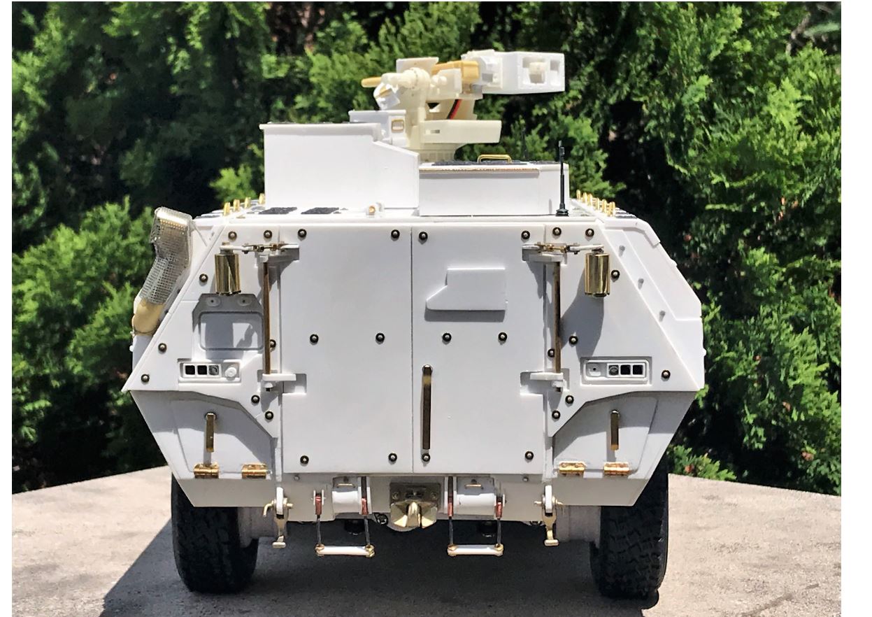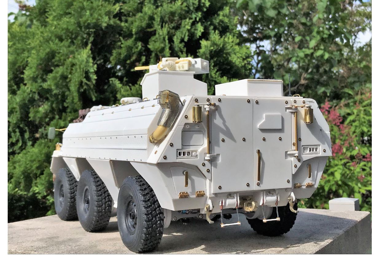 The model with its add-on armor anchor points on the roof, FLW-200 base and rear.