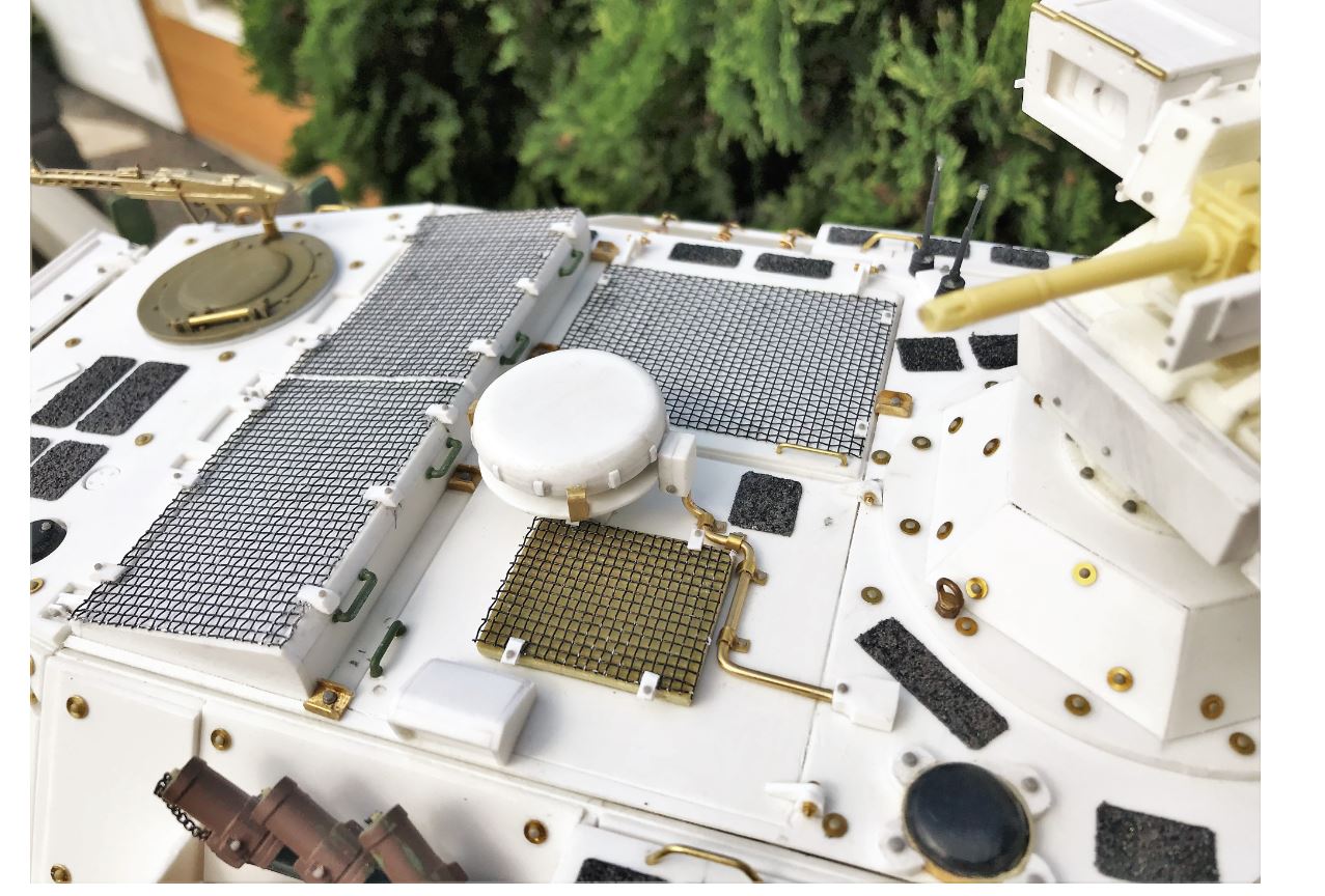 The TPz-1 A8 version with add-on armor is equipped with spring assistance mechanisms to help the crew open and close the doors. I earlier attempted to reproduce the ones on the cabin but I did cut some corners and I was not satisfied with them. As I was doing the ones on the back door, I decided to redo them all.