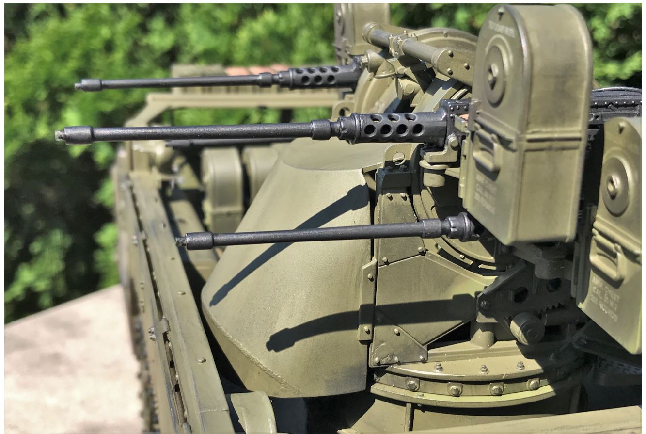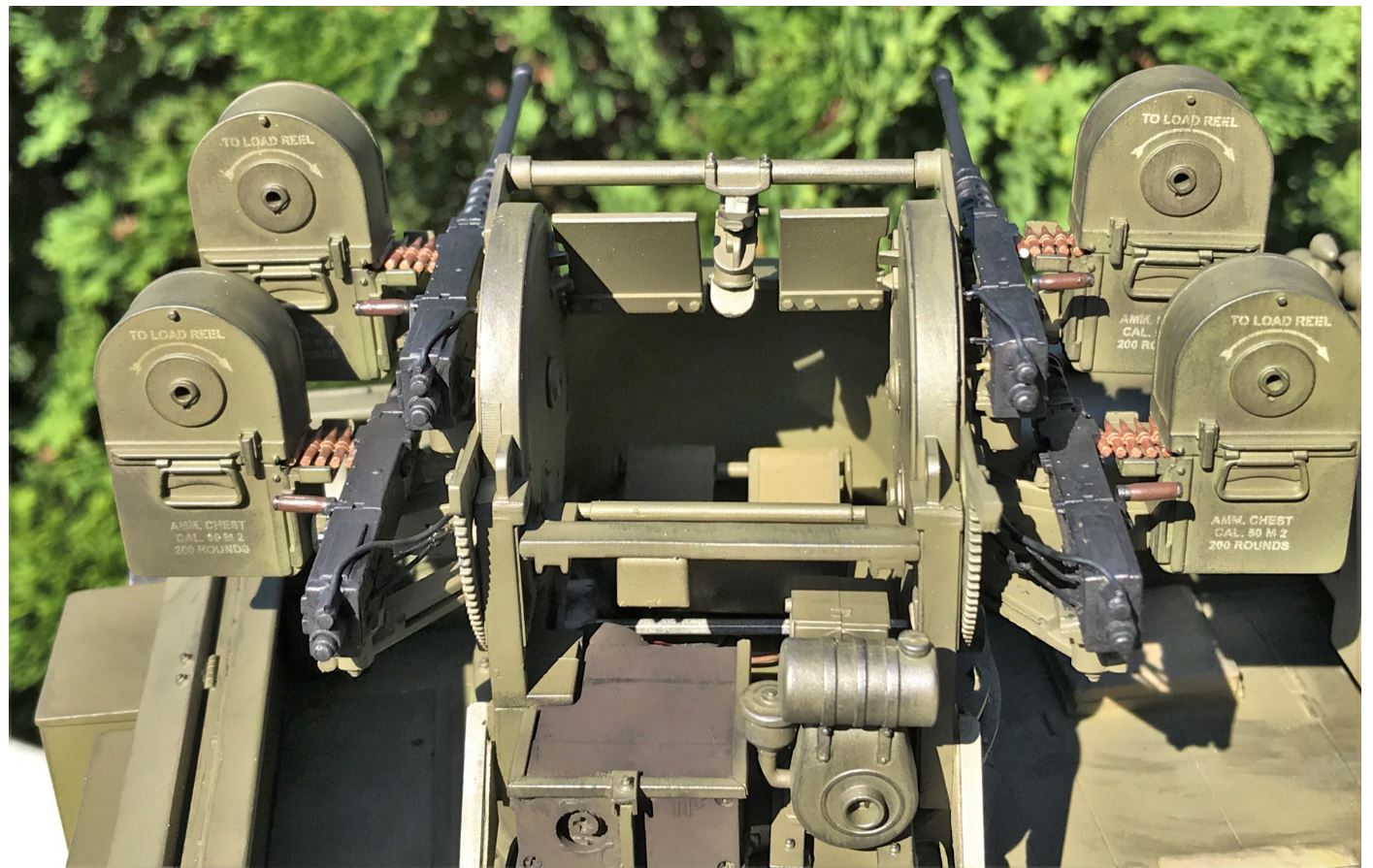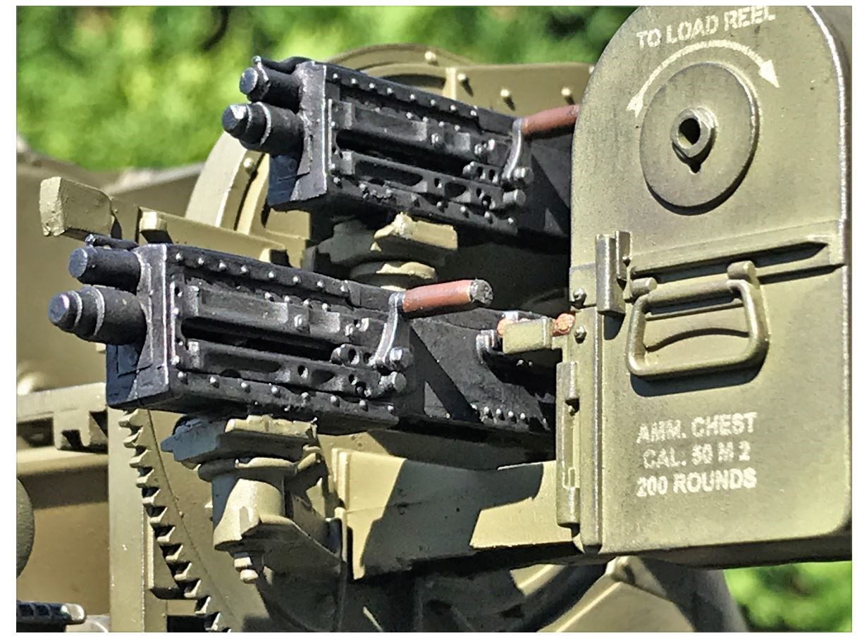 Now, the gun mount. The use of Tamiya M2 with brass barrels with Fibre optics really makes a difference compared to the original WSN guns.