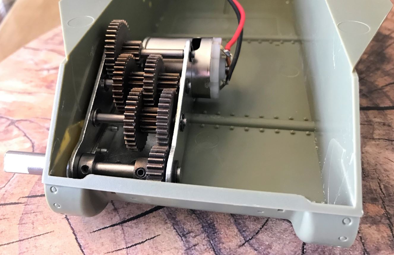 Mato panzer III MT197, it almost slides right in. I only have a right gearbox for tests, but it only needed some grinding of the front inside armor for the last gear to determine its a good potential for integration. To fit properly and give the last gear some room to spin, i will need to grind one more mm all the way through and apply a plasticard sheet on the outside. Height seems good for left side. I like the Mato gearbox because the main shaft can be easily removed, reworked and put back. But i am not recommending it yet until i have installed it and worked out the integration, seen the behavior with the suspension, tracks and what reinforcement is required. But that will be a story for another build.