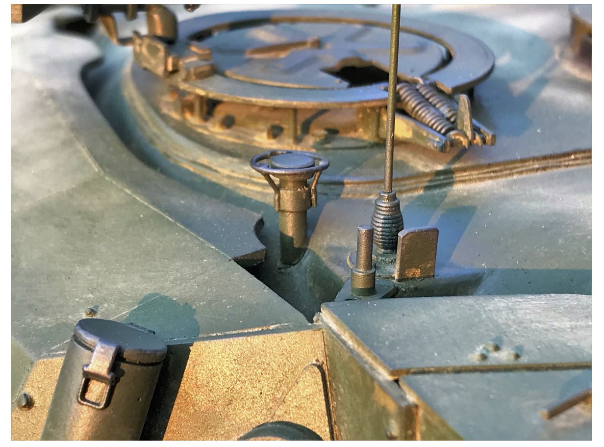 Here, after application of a primer, the tank is applied with a coat of Nato Green. It does not really matter to have the exact color and tone, the dust pigments applied later will blend in and change it all.