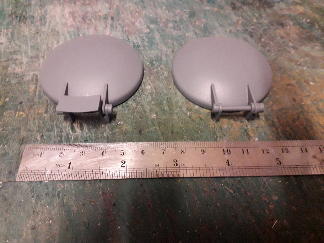 Here are the Commanders and Gunners hatches, a tricky design, so they were cast in resin to get the shape and Brass and Styrene used for the hinges, not perfect but good enough i feel.