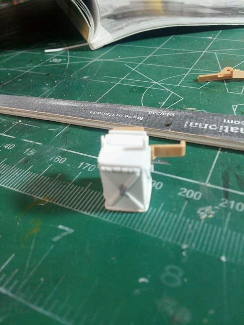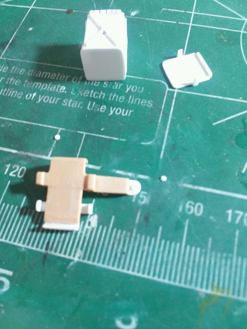 I need to catch up with post here again, however here is a little teaser. After completing the Tamiya .50 M2 Machine gun I noticed that most .50's prior to Sept of '44 had the ammo chest type can which held 50 round for the M2 Browning. I started from scratch and wound up cutting up another Tamiya M2 mount and made my own ammo chest. I have yet to prime the parts, but it does show the modified Tamiya ammo can to chest conversion and the ammo chest itself. The chest is somewhat simple construction. .030 sheet plastic, 3/8" retangular tube, 1/16" half round plastic, .030 plastic rod. I filed the inside of the retangular tubing because I have the turned brass .50 rounds from Impact and I intend to belt them and put them in the can fed up on the feed tray of the M2.