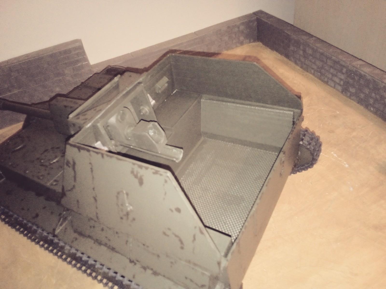 The mantlet is now attached to pivots and glued in, and I am now starting on the myriad of ammo crates that these have on the interior.