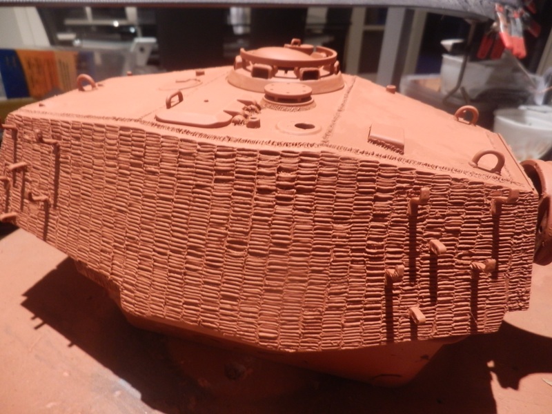 Even the round Tiger 1 turret took the texture easier............I assume the difference in plastic.