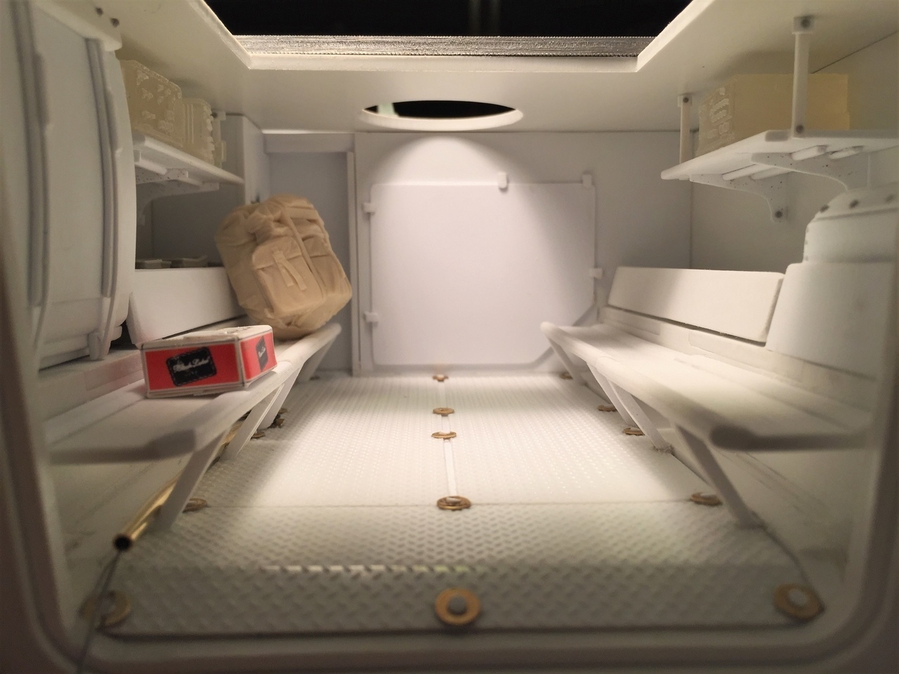 Overview from above of the interior so far. The floor of ACAV M-113 could be covered with sand bags, but I am not planning to do that.