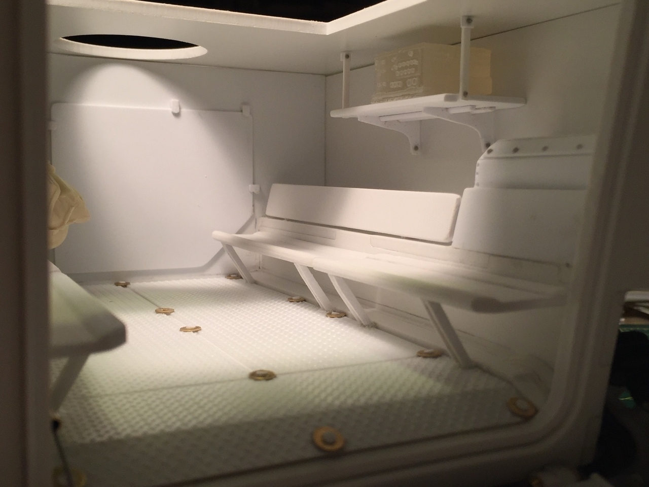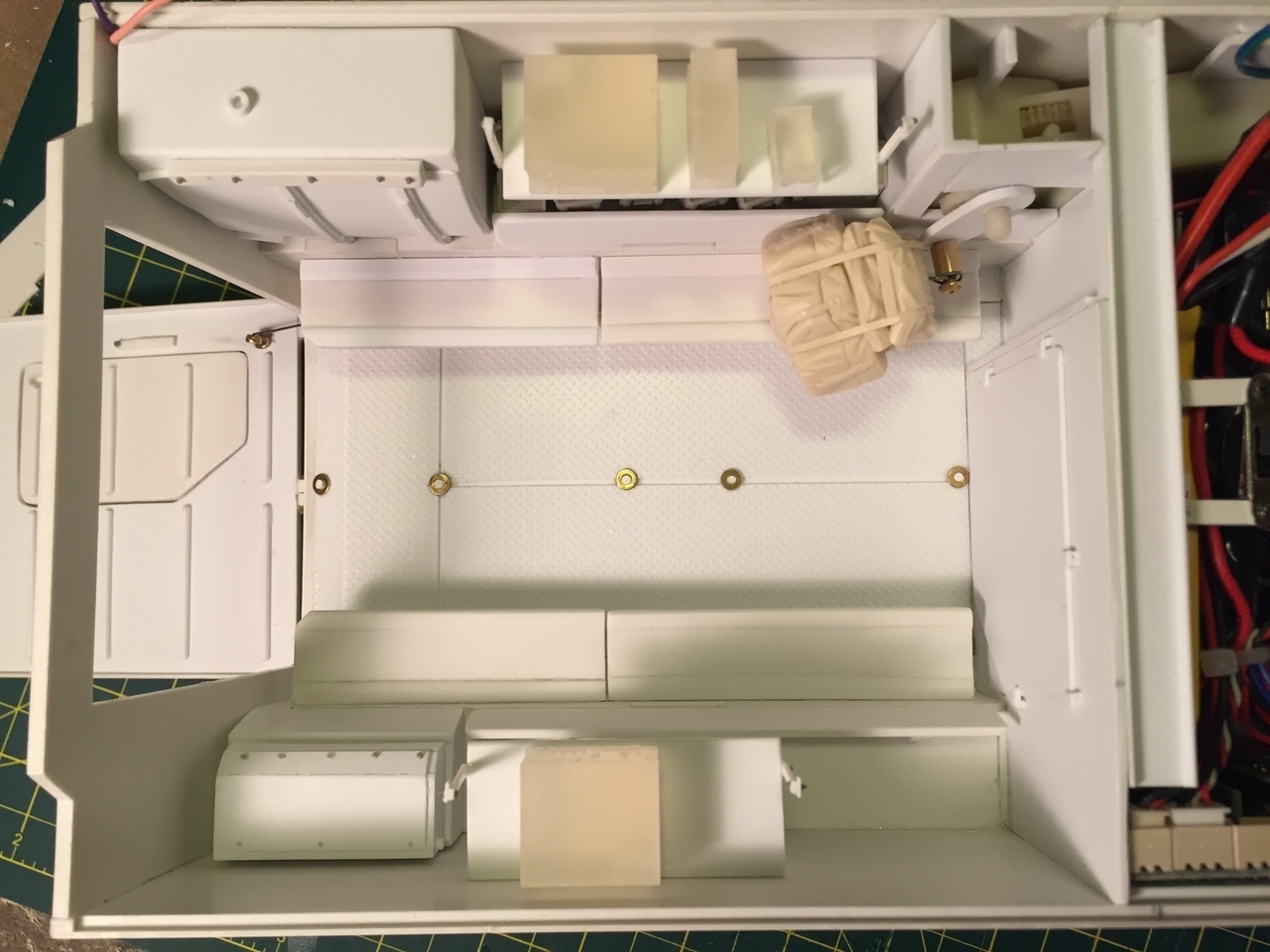 Continuing with the interior. It is far from over but the following picture gives you an idea of where this is going. Yes, I intend on building the central pole with the 2 seats.