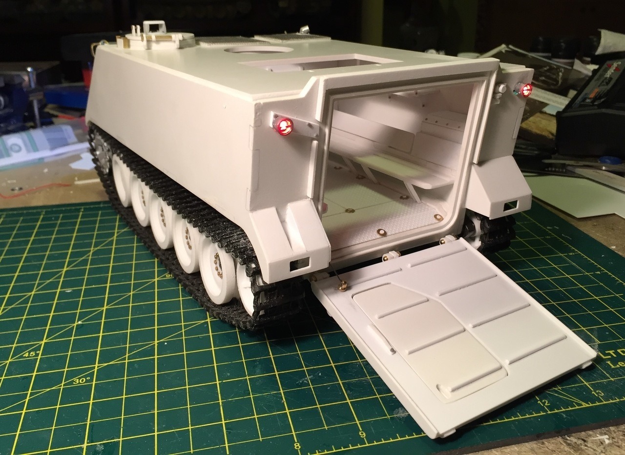 The ramp elevation push rod was made to go through the seat. Not ideal but it is less intrusive that way because items can be put on the seat to hide most of it from view when seen from the rear. The interior of M113 in Vietnam were a real mess so it won't be difficult.