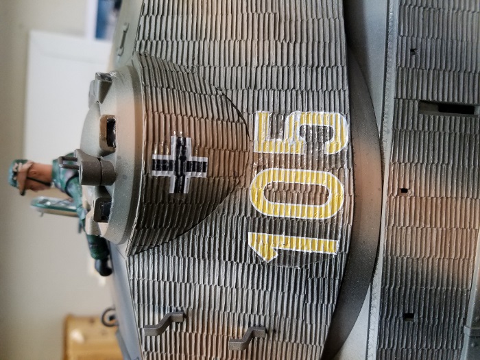 We just went out and looked at them. They are having a difficult time setting into the Zimmerit. We put another coat of micro on it and wiped it down extensively. Better but not like it needs to be. So tomorrow we'll try one more time. If it doesn't settle like it needs to be, my wife, who is an accomplished painter, said she will paint the numbers on.