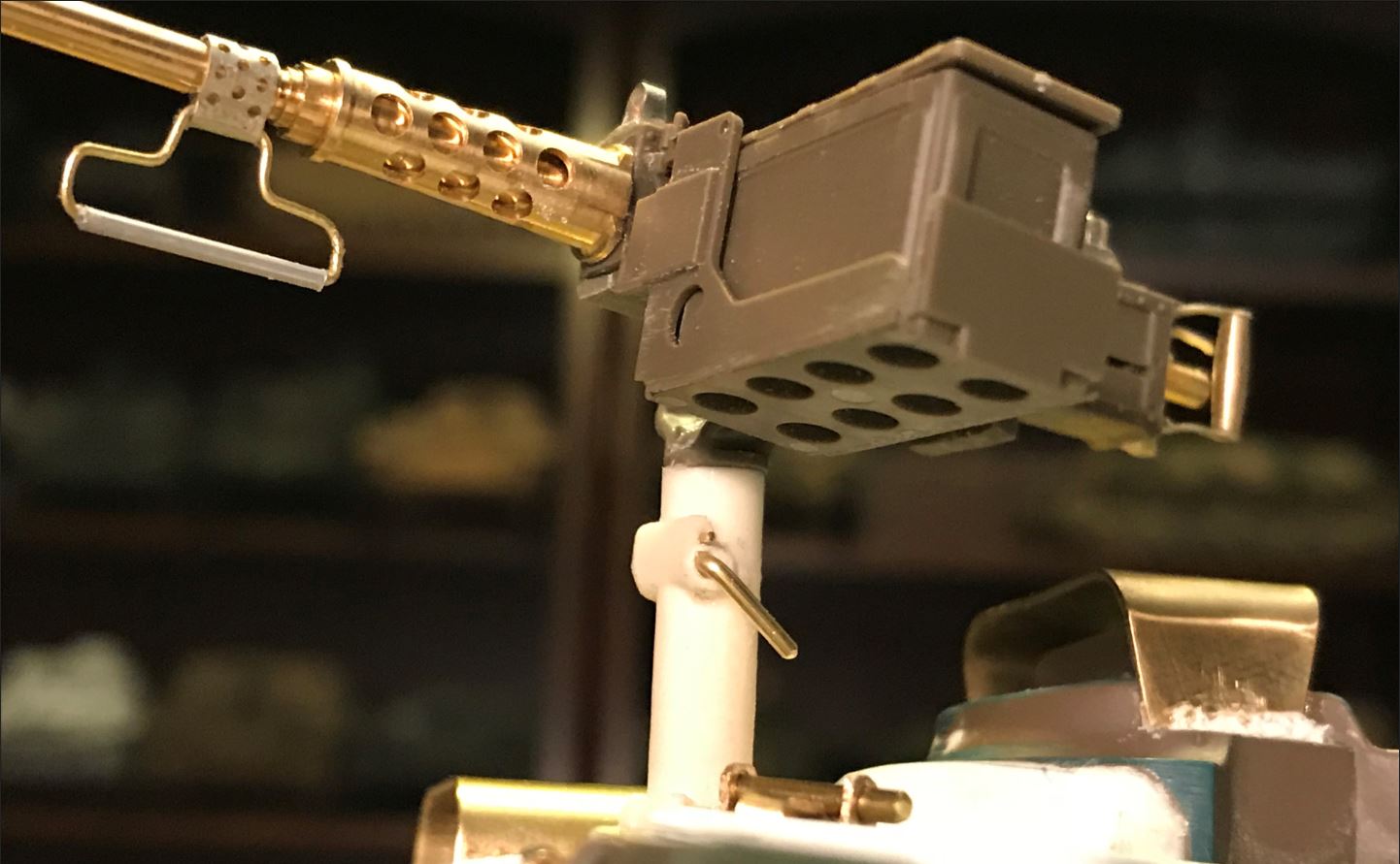 Overall view of the model. The Tamiya ammo loading mechanism should not be glued so that you have the option of presenting the gun being loaded. It makes it more interesting. The 0.50 ammo rounds are from Live Resin .