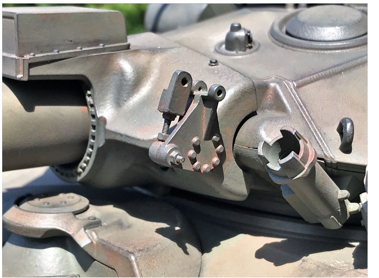 Tamiya has created turret halves to open the turret and access the electronics. Although practical, the joint shows at the front, which is not ideal.