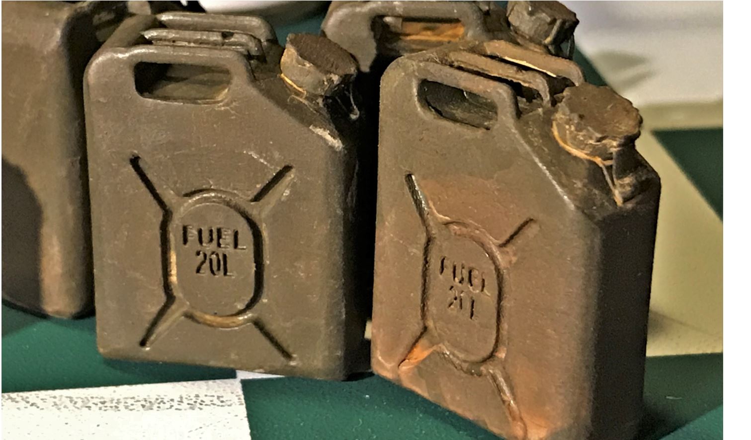 - 4 20L Water jerrycans, for crew and radiator. checked.