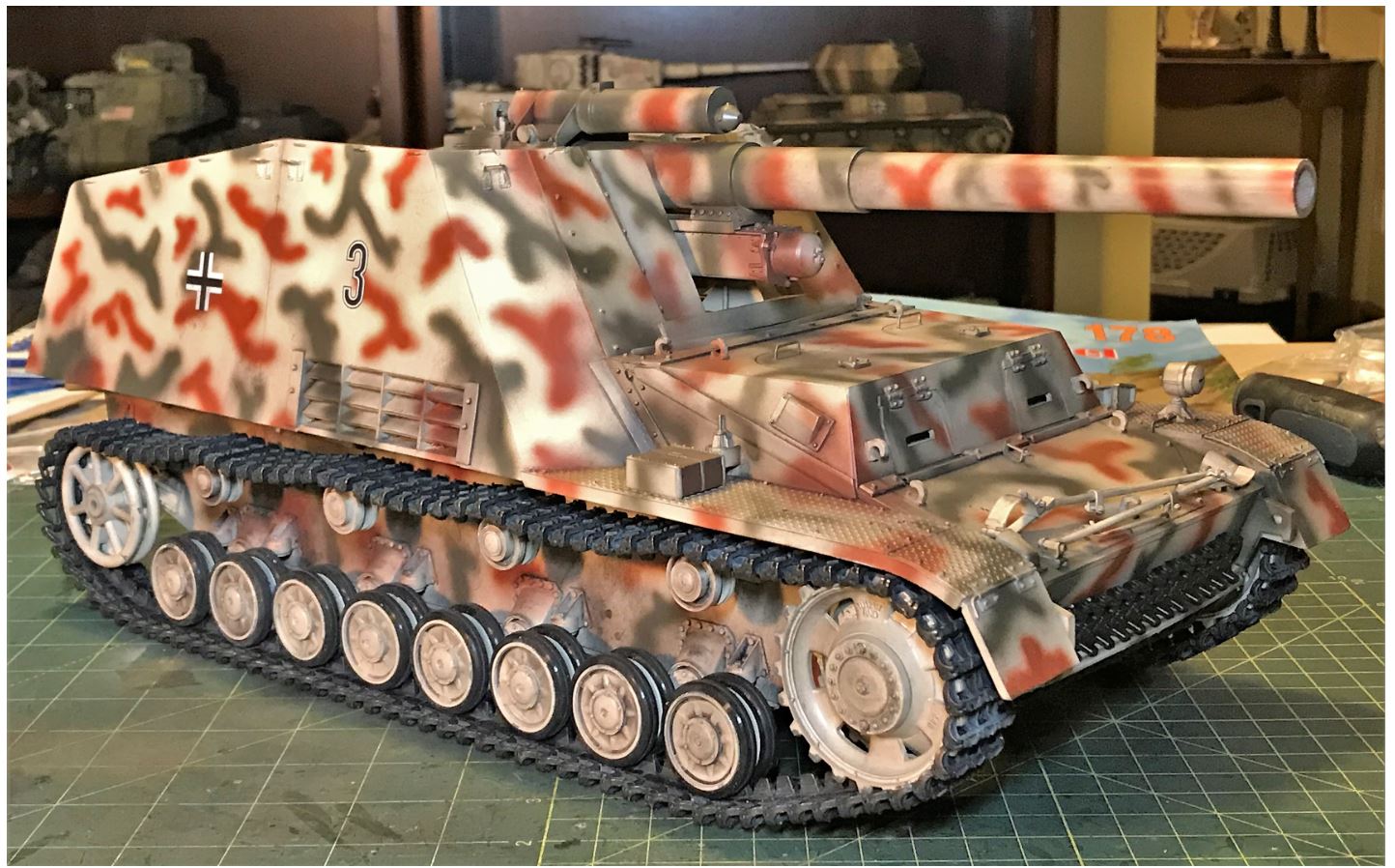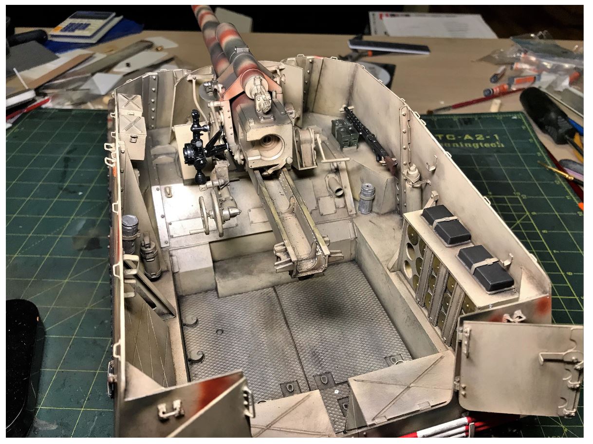 WOW! For some reason I wasn't expecting that camo job! Not sure what I was expecting, but probably some bland panzer grey color?! I love the look of that camo, reminds me of late war Italian paint jobs. I really like the sooty, dulled down look on the interior too!