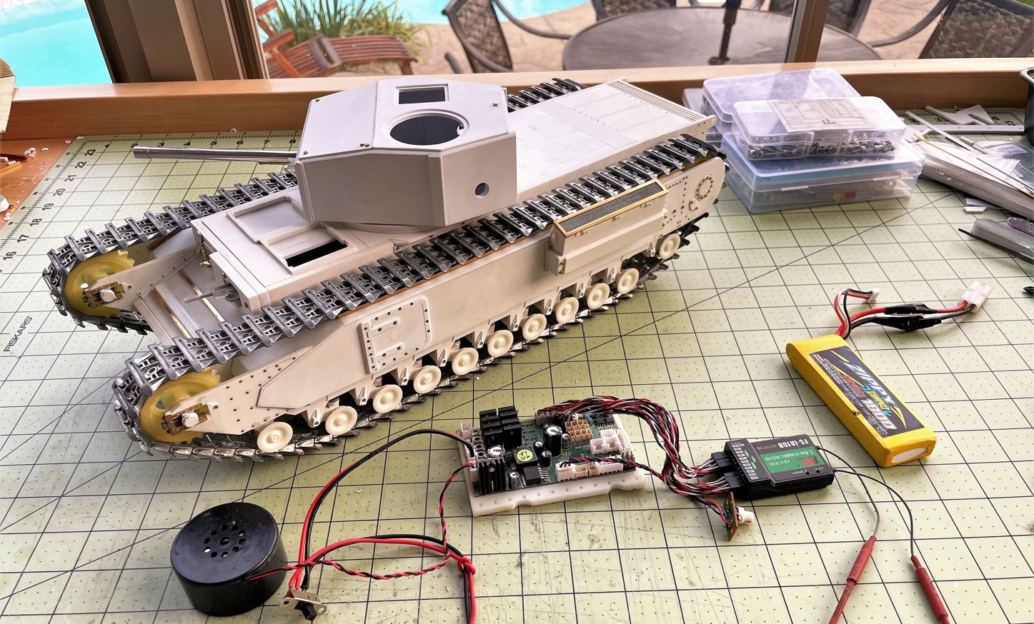 However, i did listen to many comments i got on this blog and on my Youtube channel on my past builds from people around the world. I have ordered last week a Elmod Fusion Pro that i am planning to use on the more complex builds, possibly this tank. I looked at the features and the web/phone setup interface App seem to offer what i was looking for in terms of sounds selection, machine gun rate of fire configuration and user interface. I never really managed to get the Clark configuration process to work correctly for me using their TV remote process with the little blinking lights and confusing instructions... The Elmod seems way in advance in most areas. I also got intrigued by the Elmod capability of using the Bluetooth instead of a remote control to operate the tank. This will be a learning exercise. It was time for a change as my needs have gone beyond what Clark was offering.