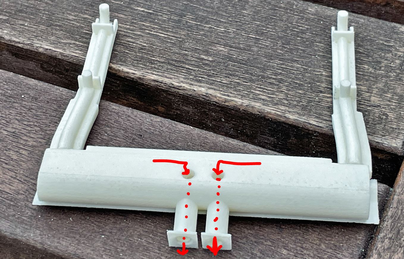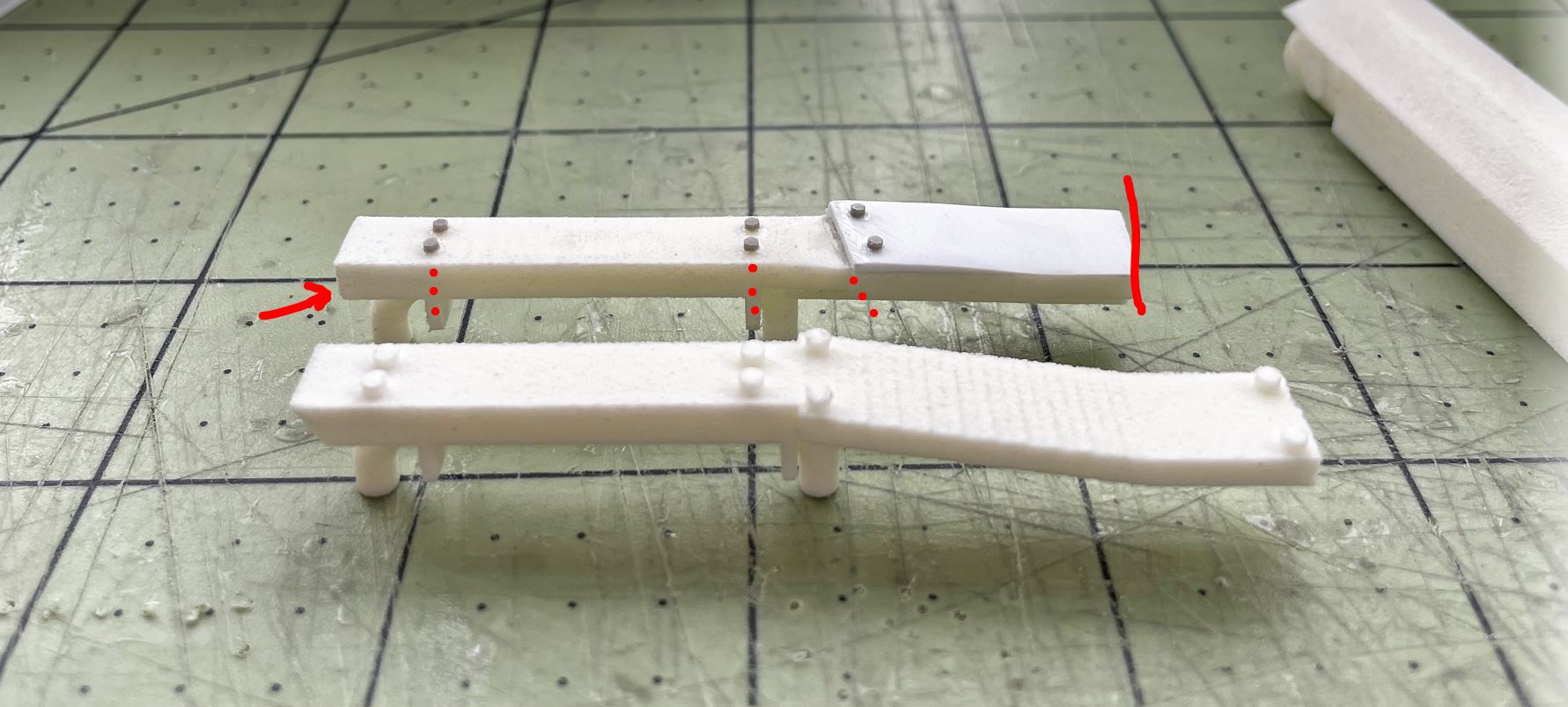 As per references, I reduced the legs in size, made them wider to fit my upper deck, and also redid some details. Comparing before and after.