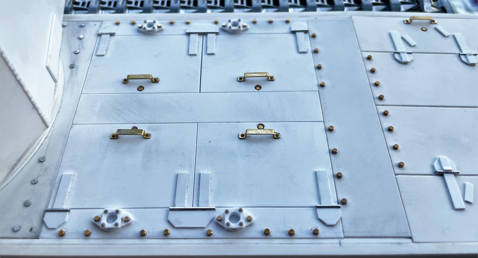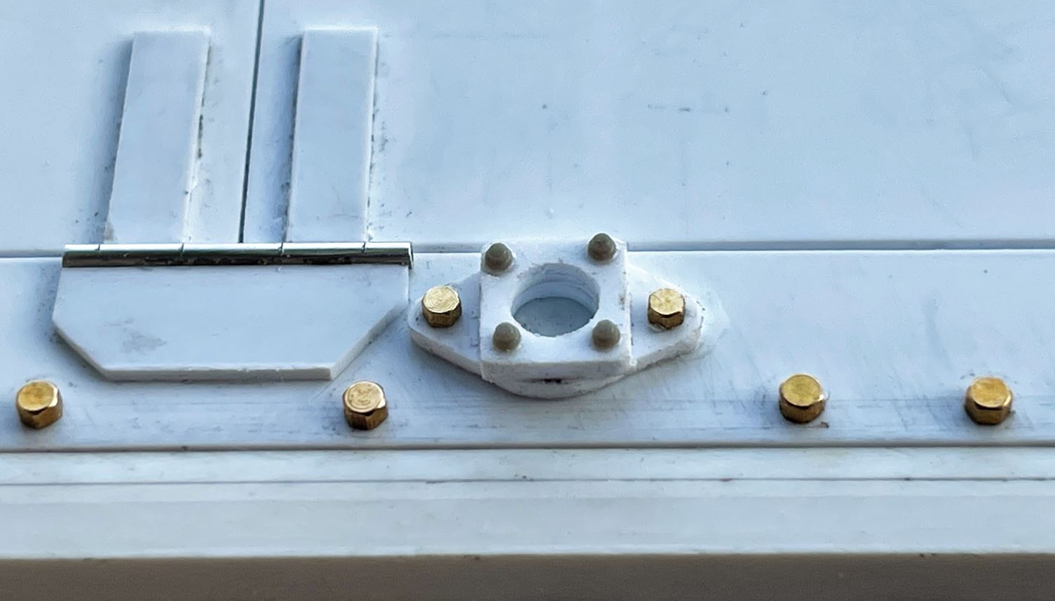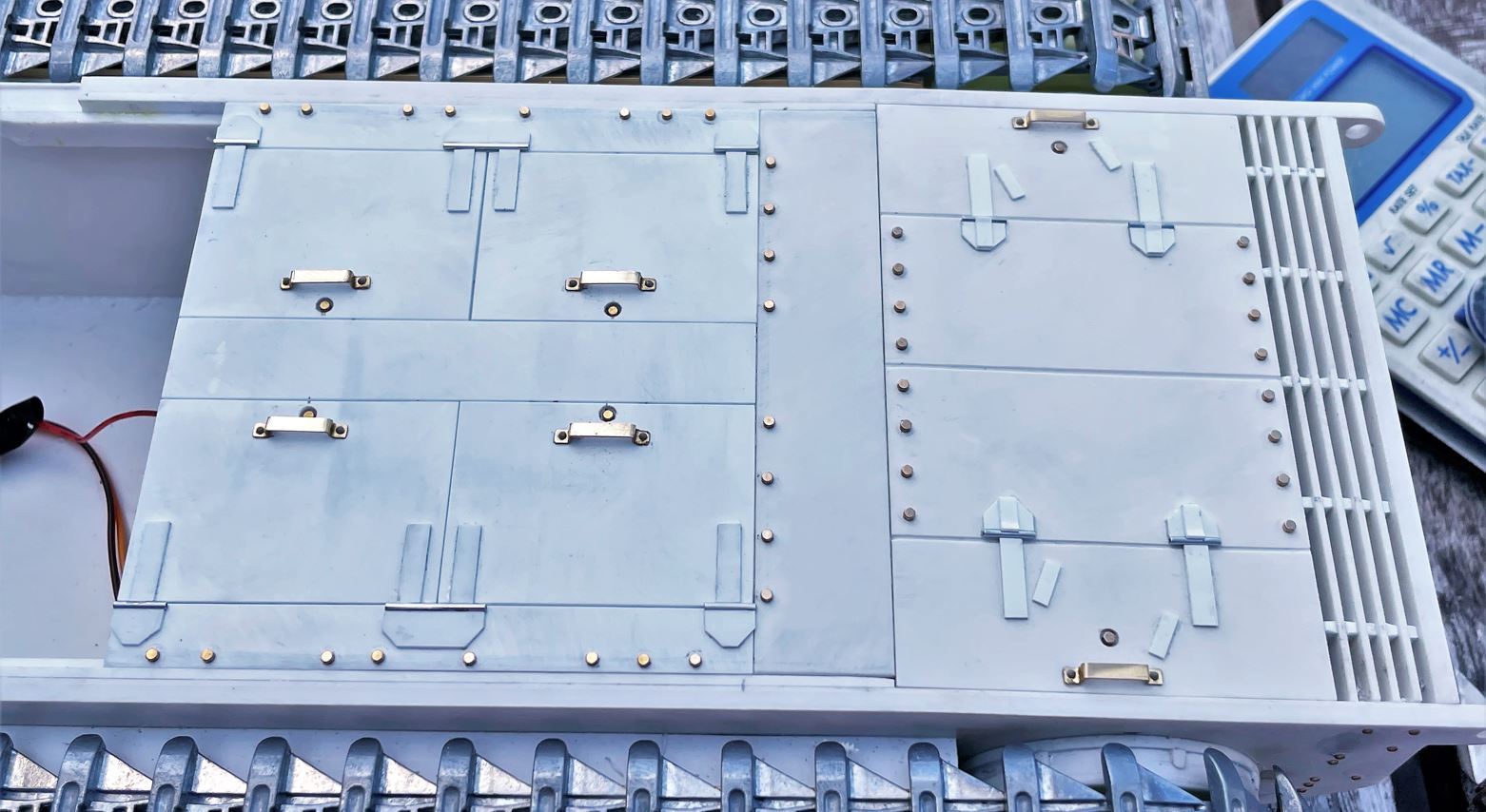 The deck plate over the gearbox done earlier is prepared for further detailing. I also replaced the rivets installed earlier by M1 bolts.