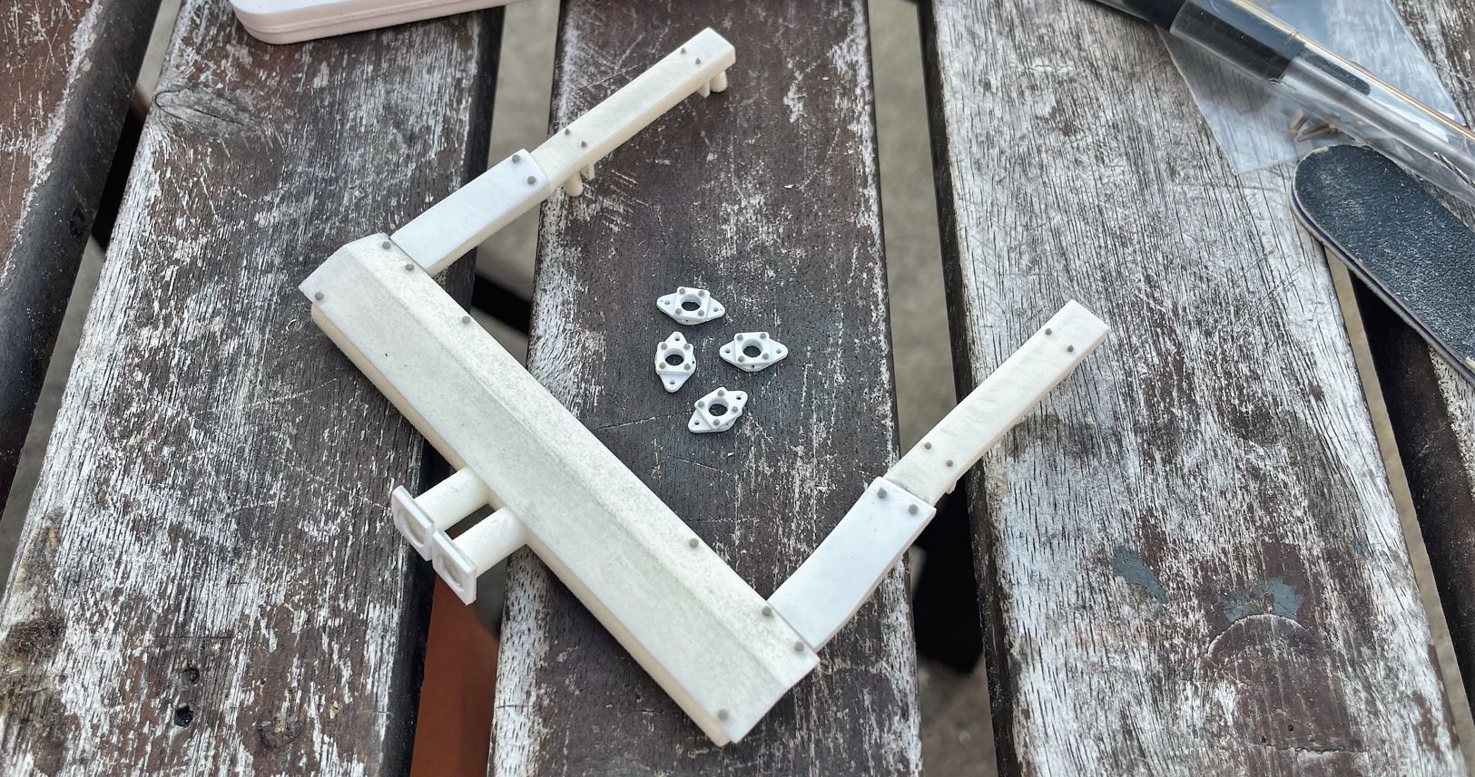 With the Ludwig kit comes a 3D printed rendition of the Churchill exhaust pipes and cover plates. In addition to the regular complaints i have with 3D printed finish, they also have some dimensions issues.
