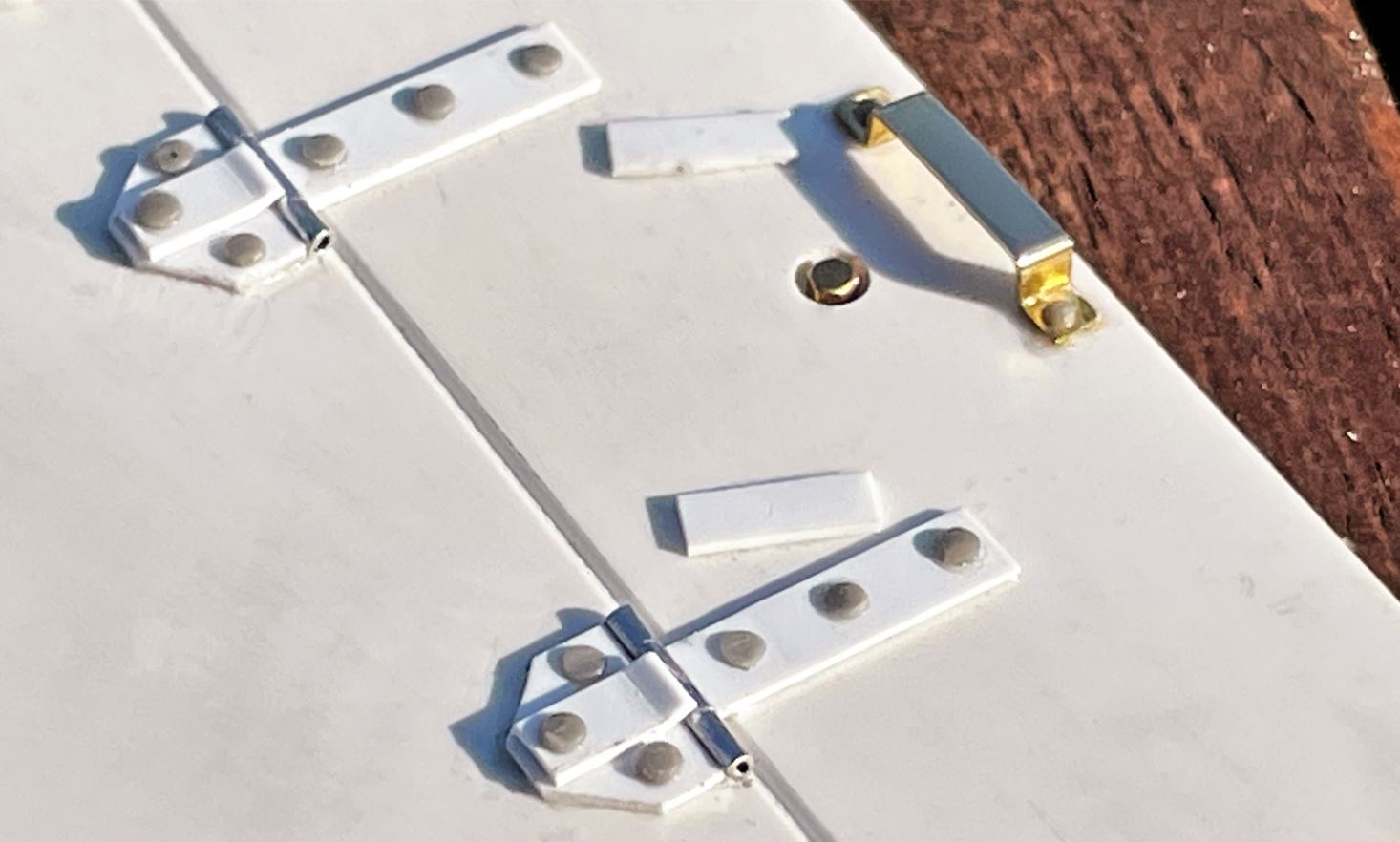 References show flat head rivets on all hinges, but they are almost level with the base metal in many cases. Do i show them or not was the question. The hinges kind of look naked without something so i installed the flat head rivets. I will need to further flatten them to be more authentic though.