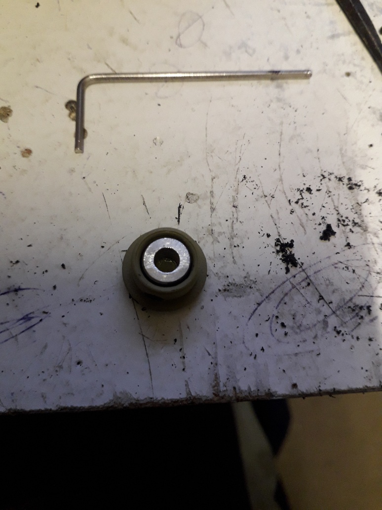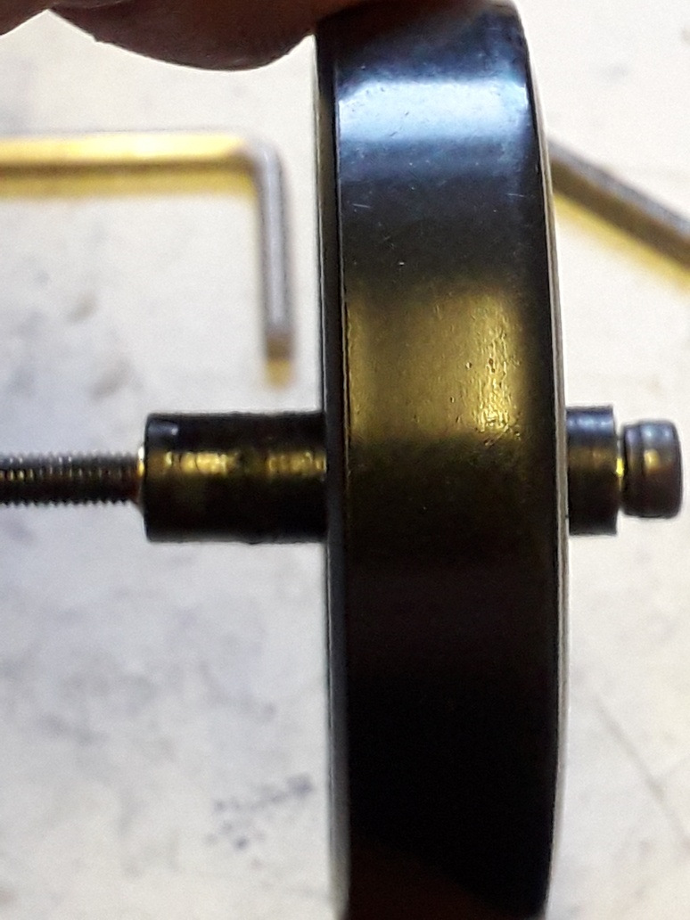 I glued the collet into the axle cap and alligned up the holes and fitted the allen screw, i removed the small boss on the idler wheel to allow the cap to fit up against the wheel.
