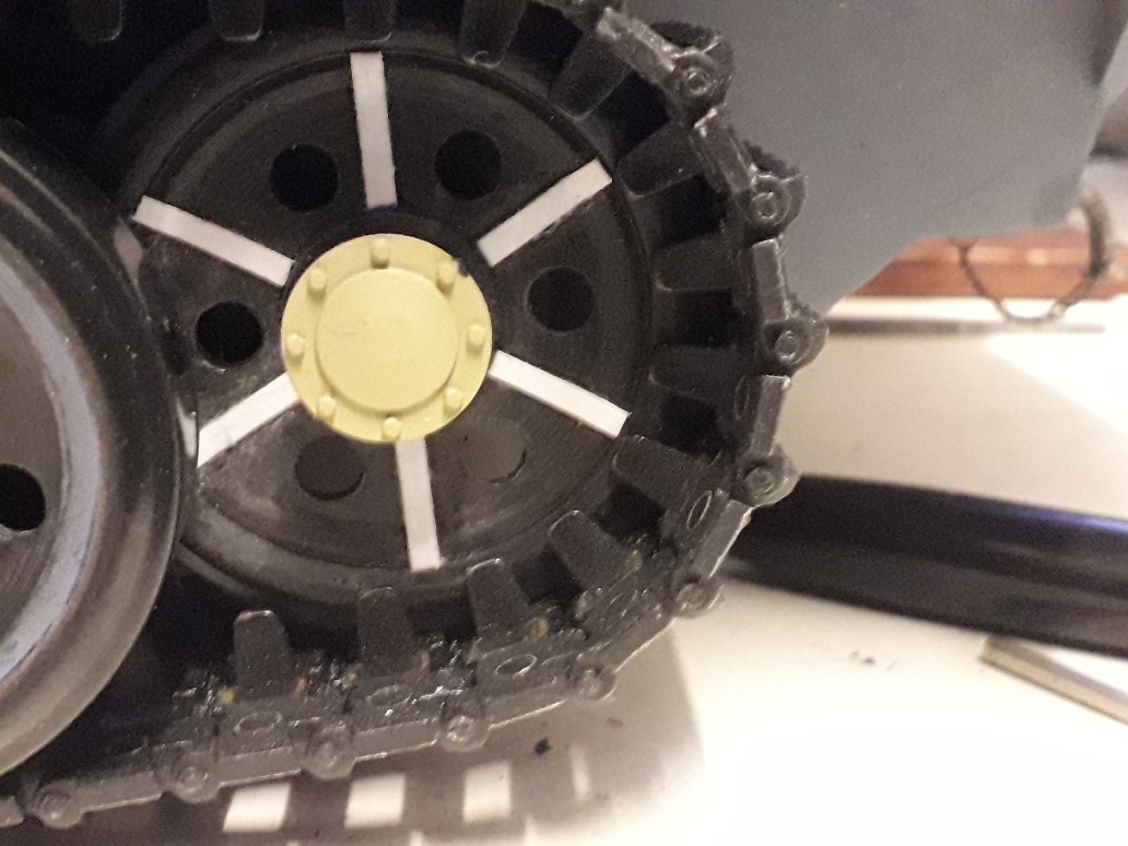 Just need to work something out for the 2 sprocket hubs and 6 inner road wheels.