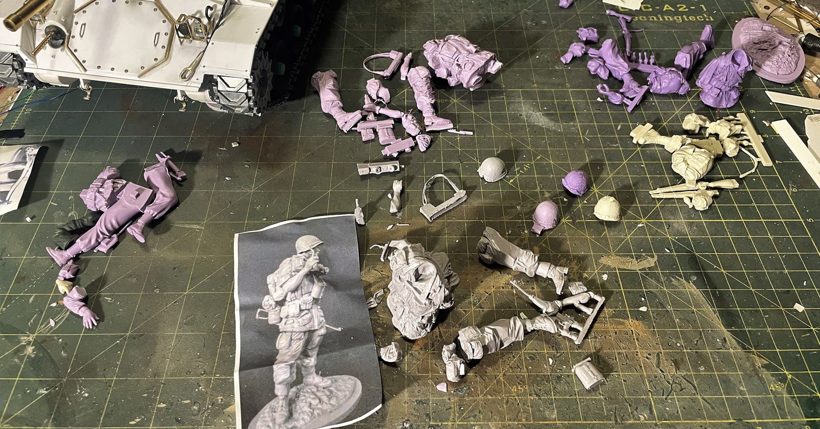 On eBay, there is a Chinese seller that sells two 1/16 resin figures of French soldiers in Indochina. These are likely copies of some other international brand. I purchase 2 sets of both as raw material for this build.
