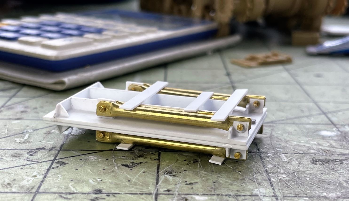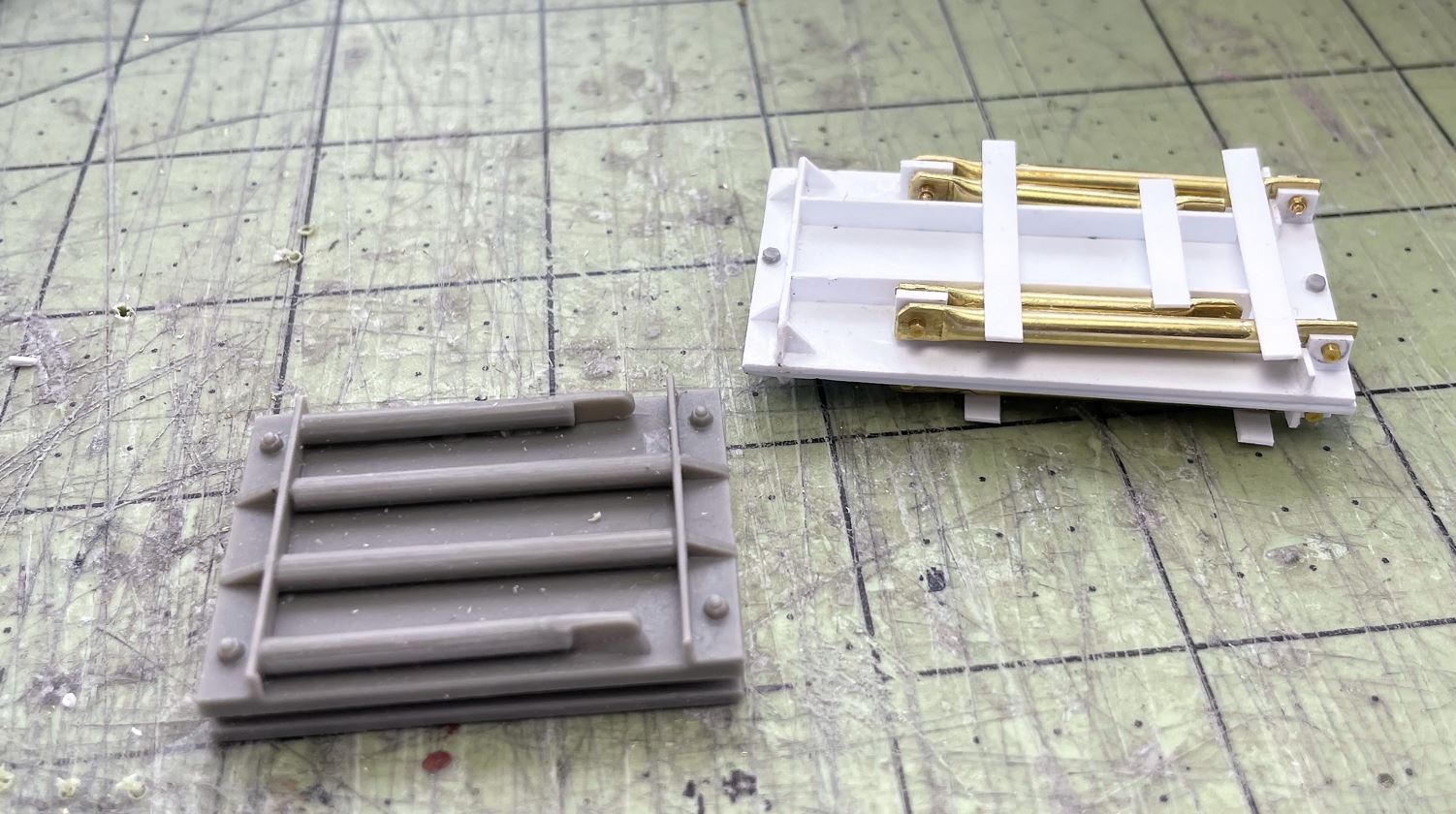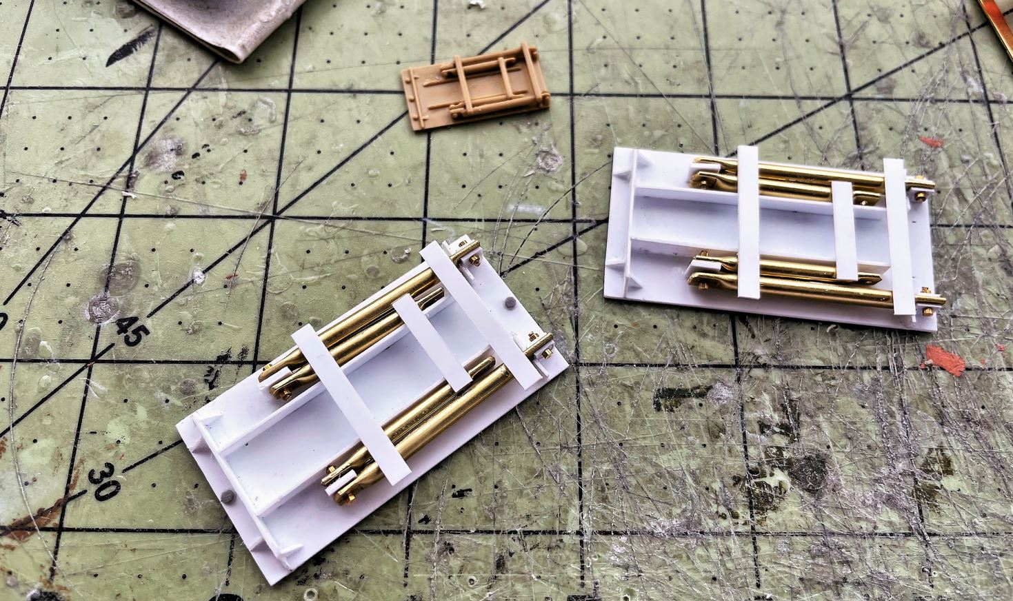 Comparison of the home made collapsible chocks compared to the resin part coming with the Vandra kit.